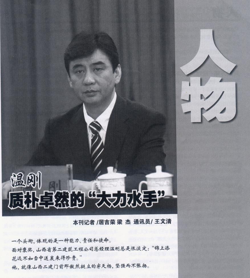 2007年1月,由于在設計公司工作的突出業績,溫剛臨危受命,被山西建筑工程(集團)總公司任命為山西省第二建筑工程公司總經理。