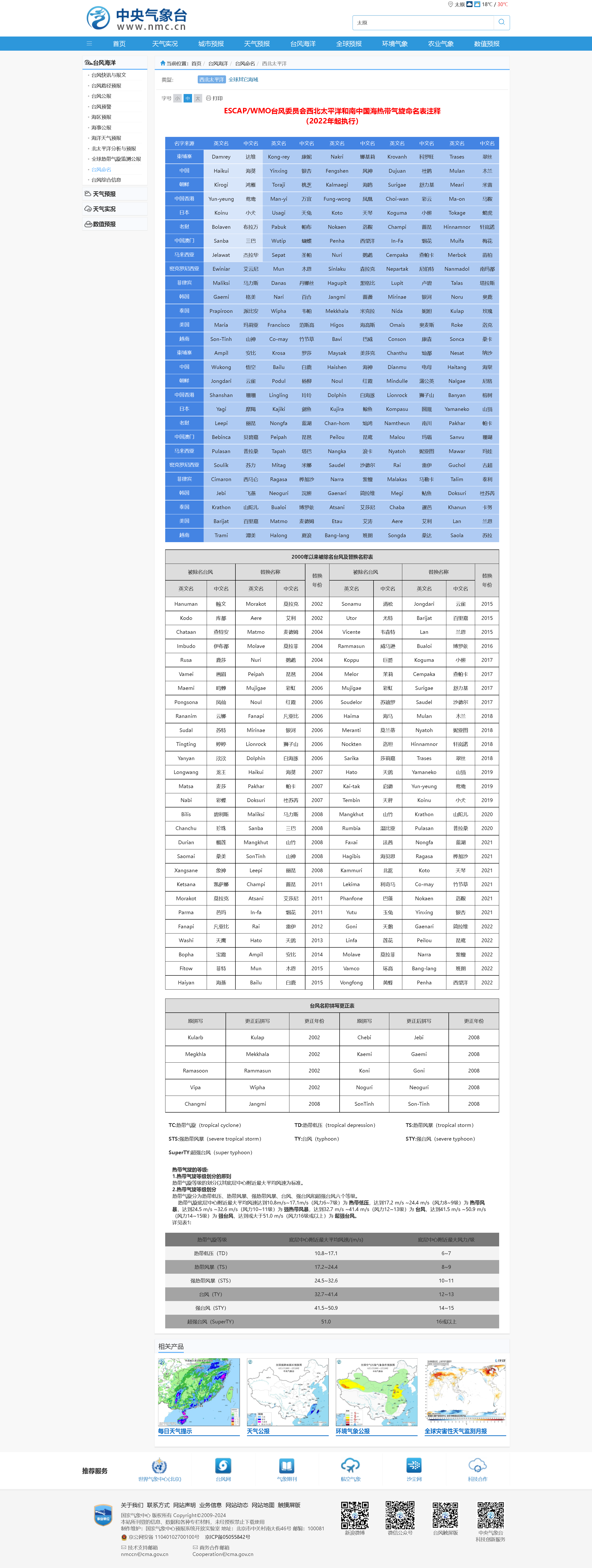 2024年臺風命名表