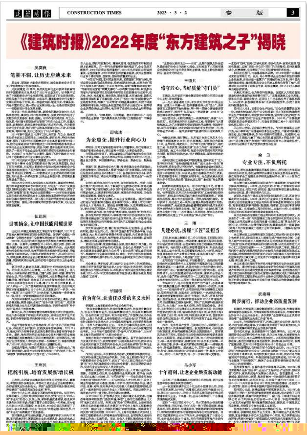 【行業動態】《建筑時報》2023年度“東方建筑之子”揭曉