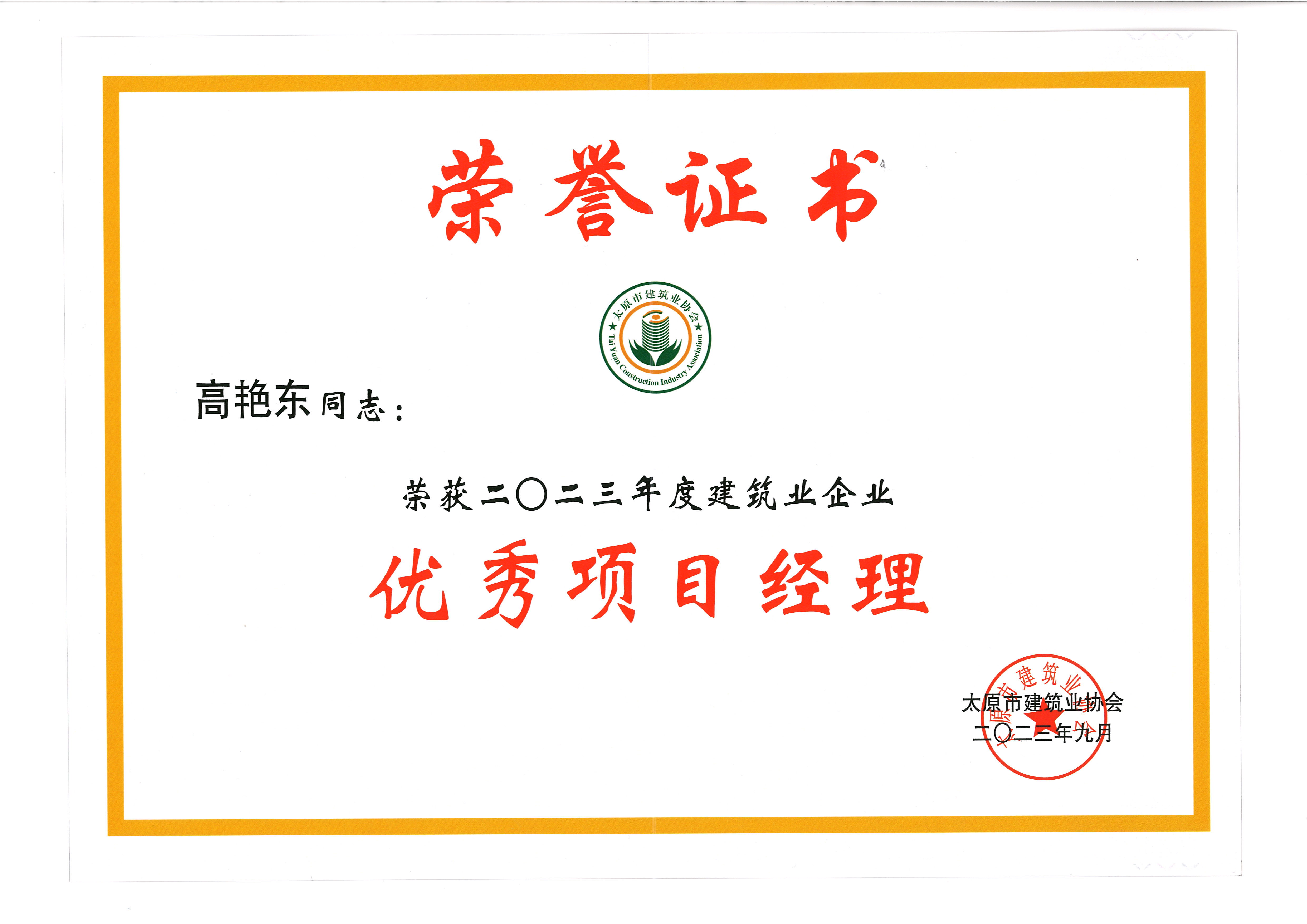 祝賀高艷東、張悅獲得優(yōu)秀項(xiàng)目經(jīng)理