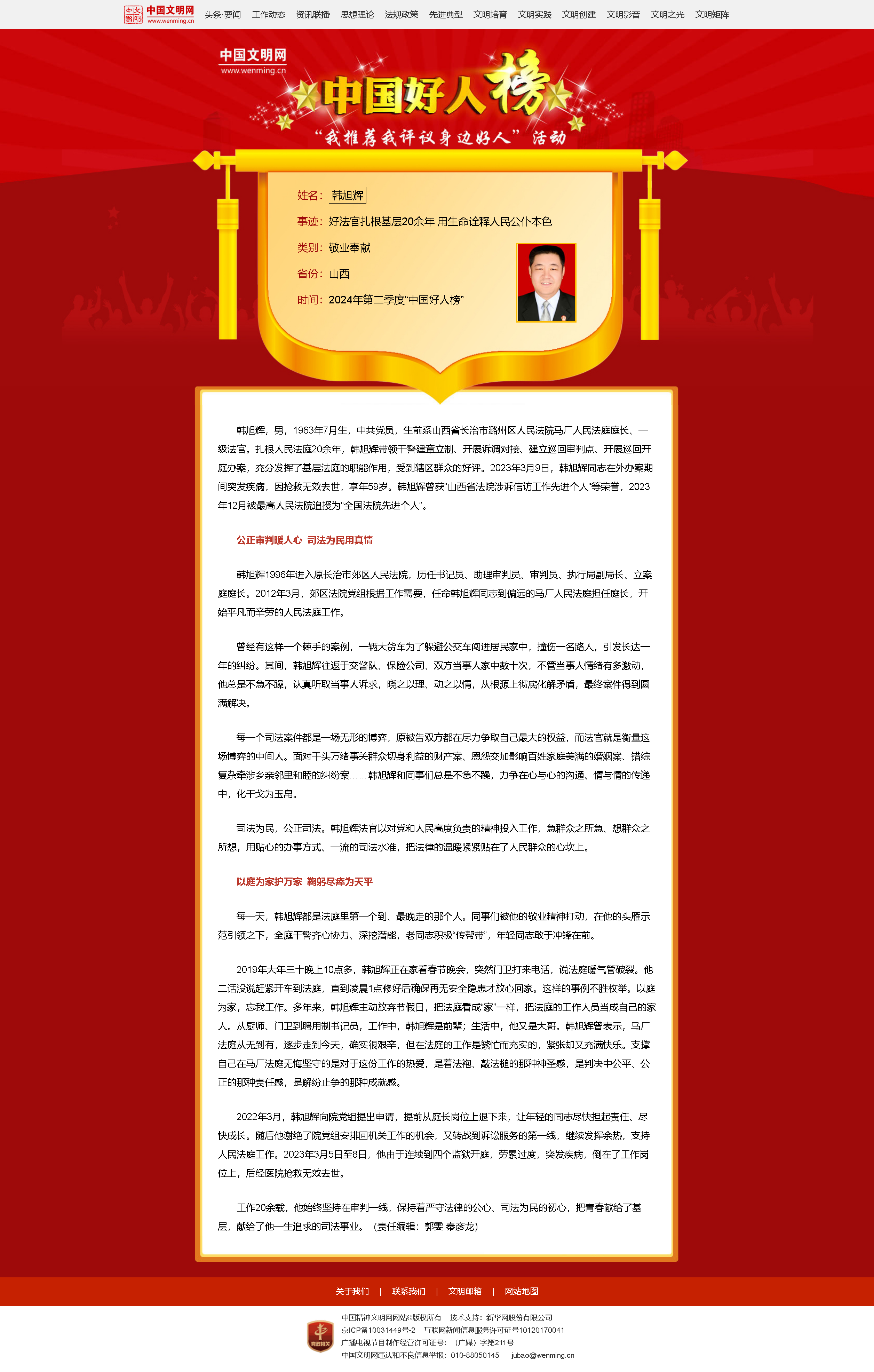 新華社太原7月30日電(記者李子怡)7月30日,2024年第二季度“中國好人榜”發布儀式暨全國道德模范與身邊好人現場交流活動在山西省大同市舉辦。經各地推薦、網友評議和專家評審等環節,共有153人(組)助人為樂、見義勇為、誠實守信、敬業奉獻、孝老愛親身邊好人光榮上榜。