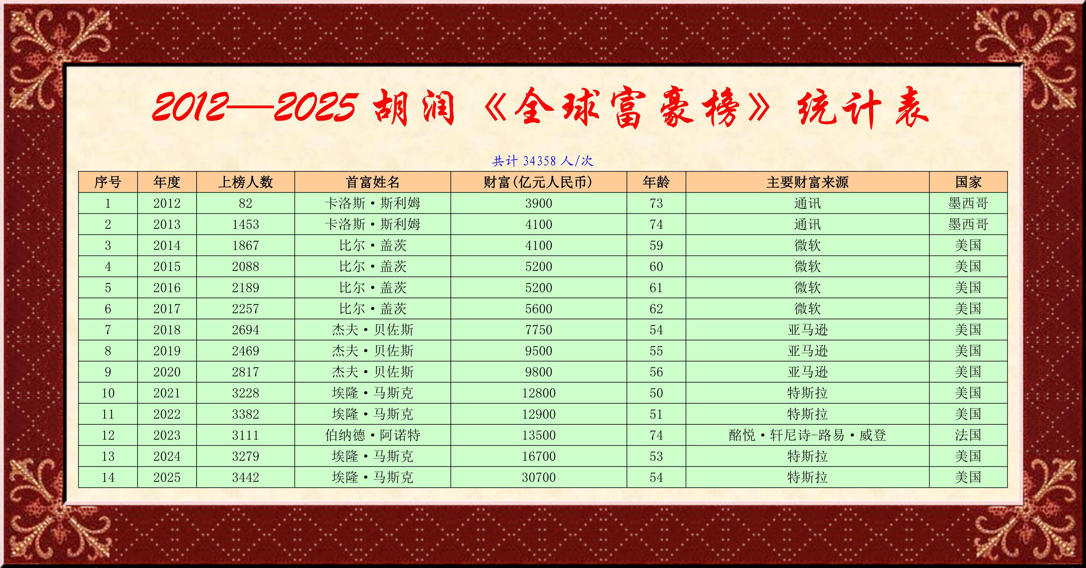 提供有質(zhì)量的榜單與調(diào)研的胡潤研究院發(fā)布第14屆胡潤全球富豪榜
