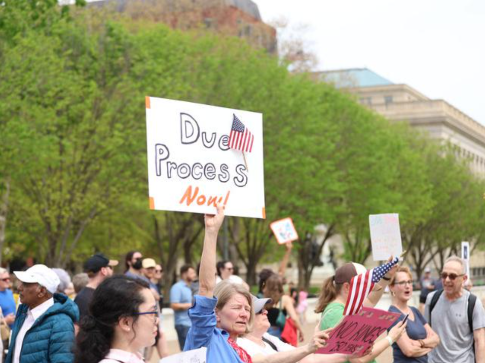 記者現場采訪、觀察發現,抗議者除了對具體政策表達不滿,更深層的擔憂在于制度受到破壞以及憲法面臨危機。不少標語牌都包含“正當程序”“憲法危機”“恢復民主”等關鍵詞,體現了民眾對美國民主與法治的深切憂慮。