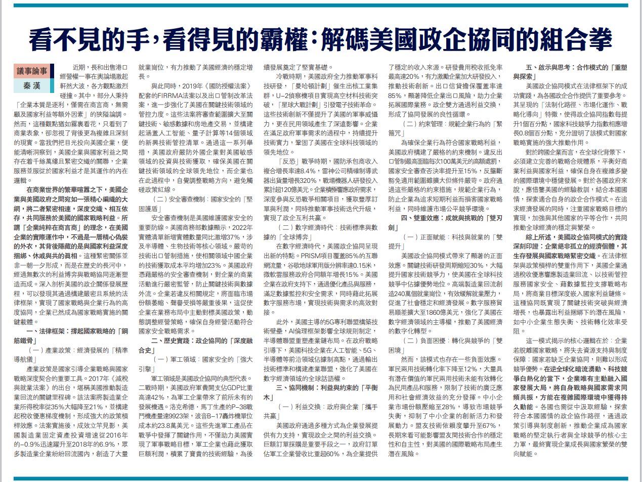 近期,長和出售港口經營權一事在輿論場激起軒然大波,各方觀點激烈碰撞。其中,部分人秉持「企業本質是逐利,僅需在商言商,無需顧及國家利益等額外因素」的狹隘論調。然而,這種觀點猶如霧里看花,只看到了商業表象,卻忽視了背后更為復雜且深刻的現實。當我們把目光投向美國企業,便能清晰洞察到,美國企業與國家利益之間存在著千絲萬縷且緊密交織的關聯,企業服務并服從于國家利益才是其運作的內在邏輯。