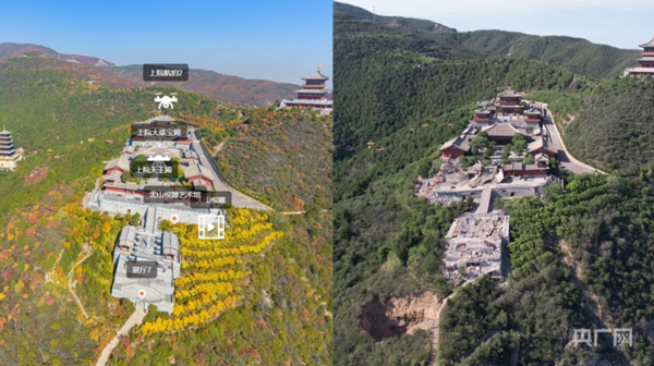 左圖為太山博物館微信公眾號全景圖,右圖為記者4日航拍畫面(央廣網(wǎng)記者 張晉鵬 制圖)