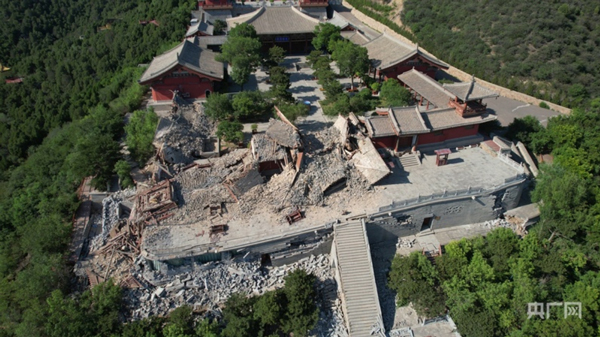 6月3日,太原市太山博物館發(fā)布閉館公告,稱因近期發(fā)生地質(zhì)災(zāi)害,即日起將臨時閉館。4日,央廣網(wǎng)記者實地探訪事發(fā)地,航拍畫面顯示, 山上部分建筑坍塌嚴(yán)重,建筑外圍一處山體出現(xiàn)大坑,大量黃土裸露。