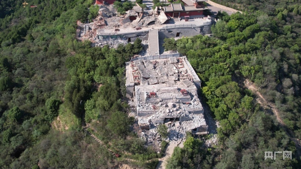 太山博物館建筑群前段,部分建筑坍塌嚴(yán)重(央廣網(wǎng)記者 張晉鵬 攝)