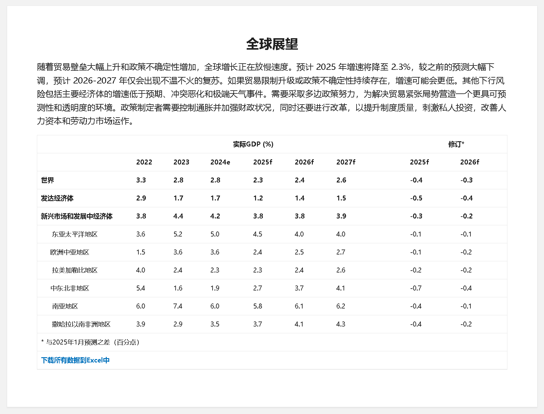 同時,今年新興市場和發展中經濟體預計增長3.8%,比此前預測低0.3個百分點。