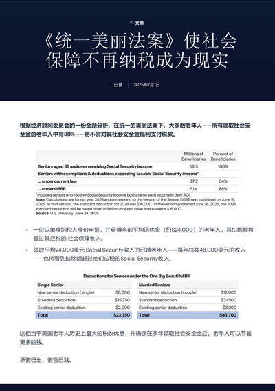新華社紐約7月1日電(記者劉亞南)美國國會參議院1日以51票贊成、50票反對的表決結果通過“大而美”稅收與支出法案。