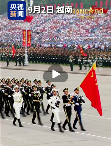 應(yīng)越南國(guó)防部邀請(qǐng),中國(guó)人民解放軍儀仗司禮大隊(duì)抽組儀仗分隊(duì),參加越南今天(9月2日)舉行的八月革命暨越南國(guó)慶80周年紀(jì)念活動(dòng)。中國(guó)軍人整齊的步伐和昂揚(yáng)的軍姿贏得了越南民眾的喝彩。除中國(guó)外,俄羅斯、柬埔寨、老撾、古巴和白俄羅斯等國(guó)部隊(duì)也受邀參加閱兵式。