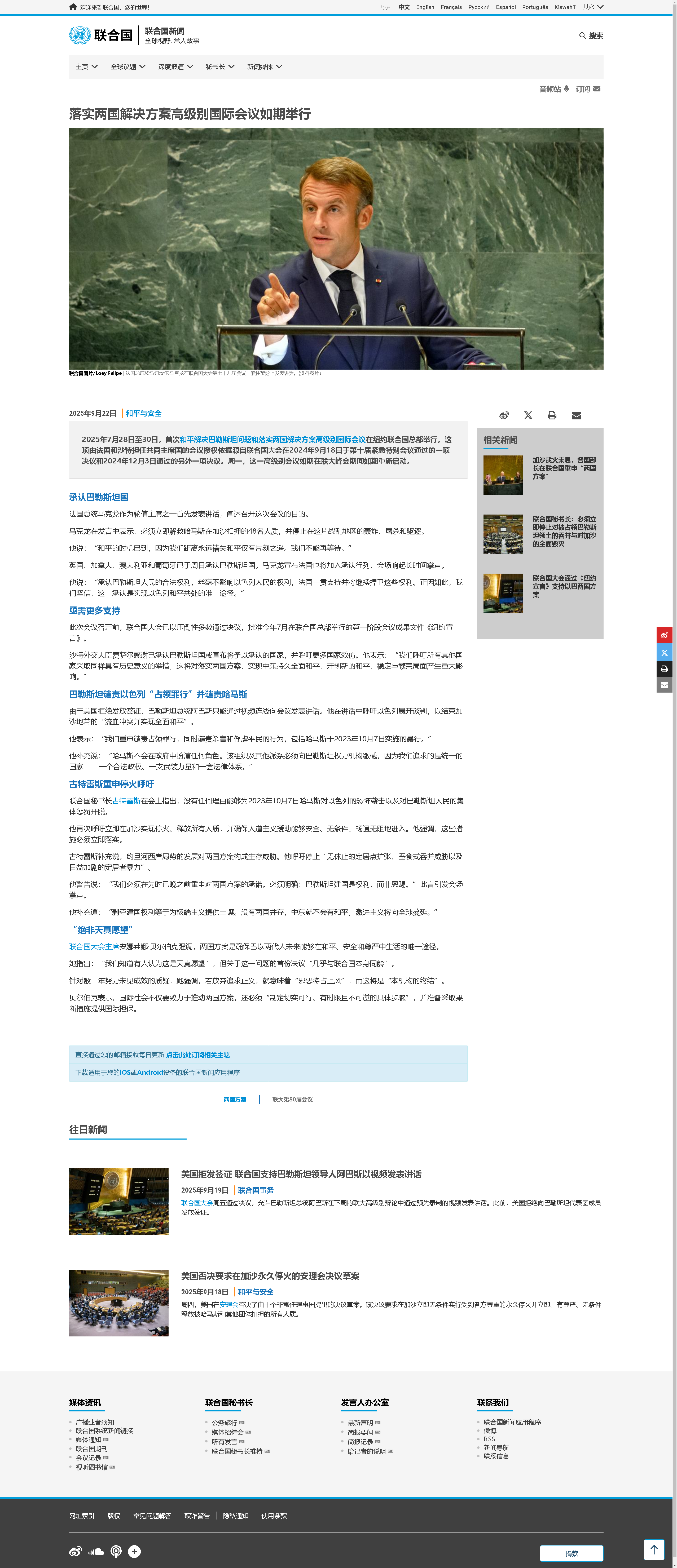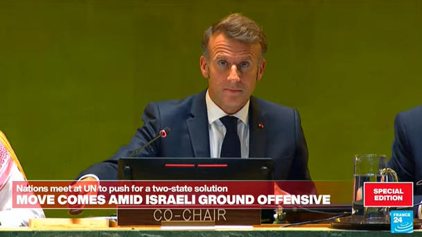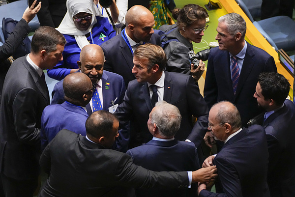 當(dāng)?shù)貢r(shí)間9月22日,法國(guó)總統(tǒng)馬克龍?jiān)诩~約聯(lián)合國(guó)總部宣布,正式承認(rèn)巴勒斯坦國(guó)。