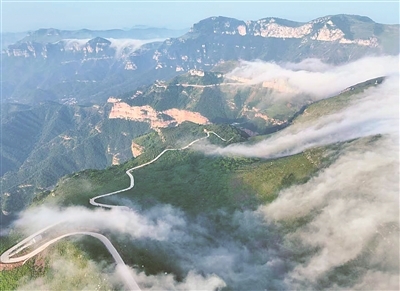 村民們參與修建的水泥路蜿蜒地通往和順縣松煙鎮“云端之上”森林康養基地(資料圖片)。