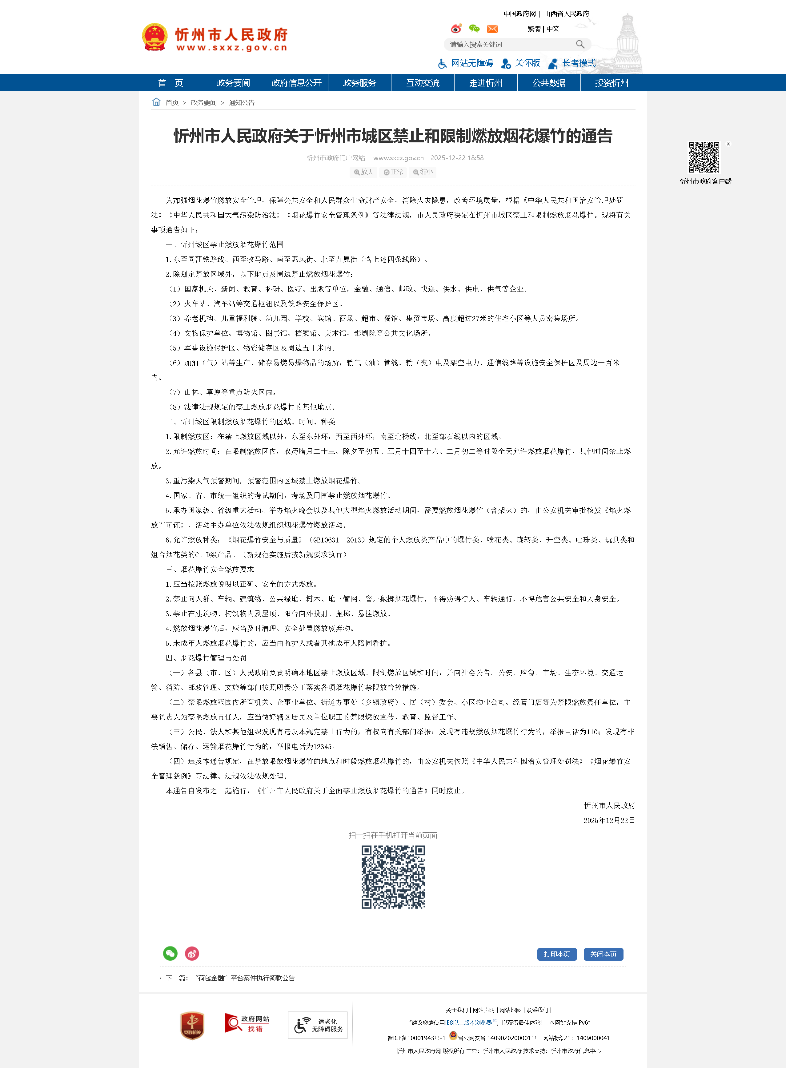 本通告自發(fā)布之日起施行,《忻州市人民政府關(guān)于全面禁止燃放煙花爆竹的通告》同時廢止。