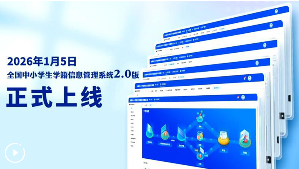 1月5日,全國中小學生學籍信息管理系統完成迭代更新,正式升級上線