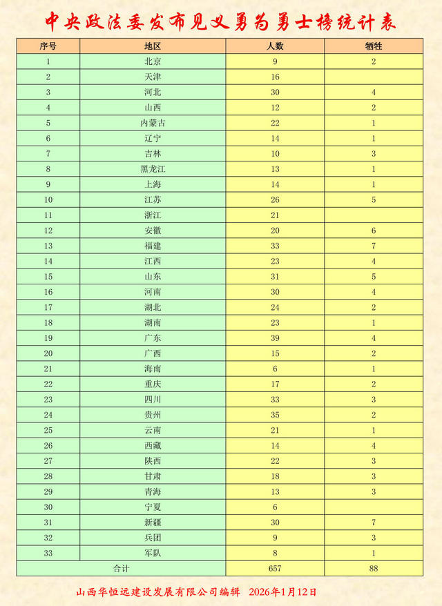 根據見義勇為典型的網絡關注度、各地依法確認和申報意見,進行綜合評審評議后,2025年第四季度共有50位見義勇為勇士獲通報表揚和獎勵慰問。(黃川川)