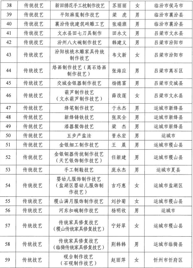 根據《中華人民共和國非物質文化遺產法》《山西省非物質文化遺產條例》《省級非物質文化遺產代表性傳承人認定與管理辦法》的有關規定,按照《山西省文化和旅游廳辦公室關于開展第六批省級非物質文化遺產代表性傳承人推薦申報工作的通知》的要求,山西省文化和旅游廳組織開展了第六批省級非物質文化遺產代表性傳承人評審認定工作。