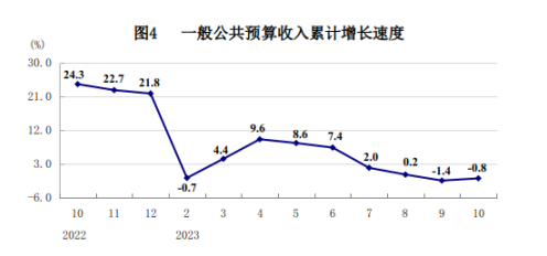 1-10月份,全省一般公共預(yù)算收入2957.2億元,下降0.8%。其中,占比75.5%的稅收收入下降5.5%,占比24.5%的非稅收入增長17.1%。一般公共預(yù)算支出4830.1億元,增長10.0%。10月份,全省一般公共預(yù)算收入290.6億元,增長5.1%;一般公共預(yù)算支出423.0億元,增長36.6%。