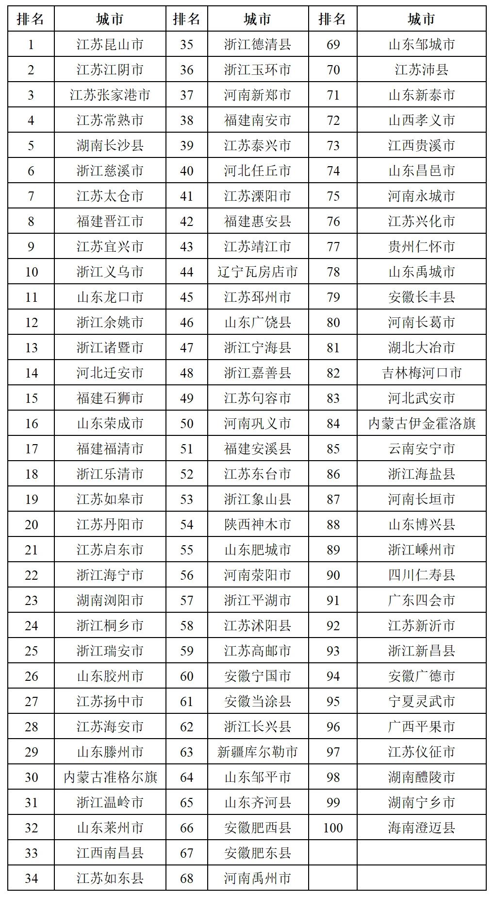 全國(guó)新型城鎮(zhèn)化質(zhì)量百?gòu)?qiáng)區(qū)榜