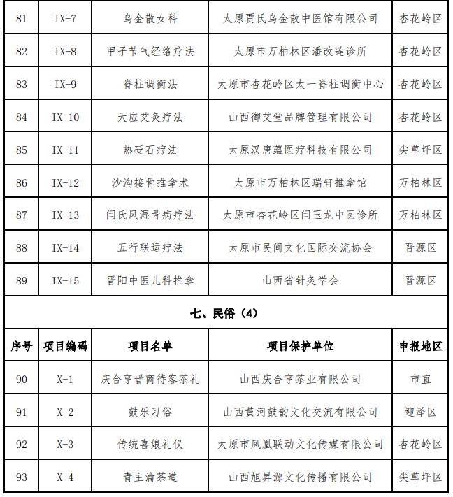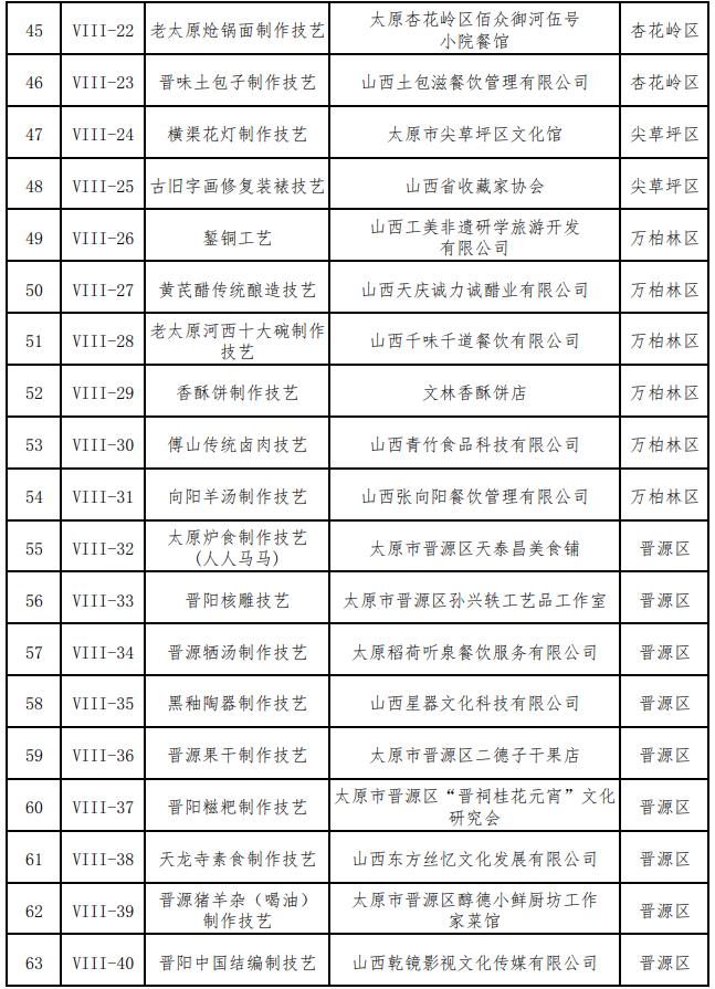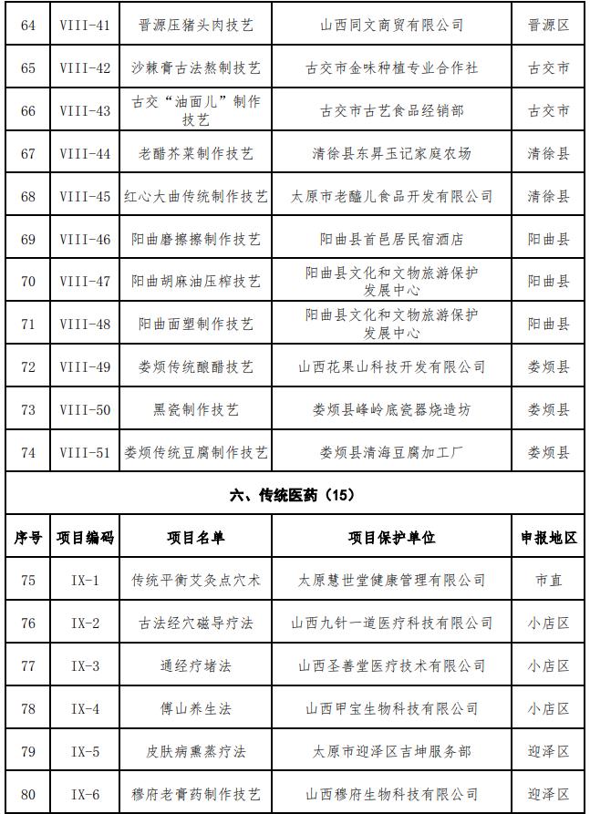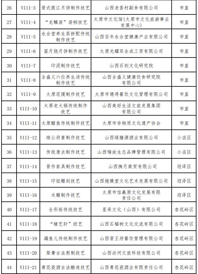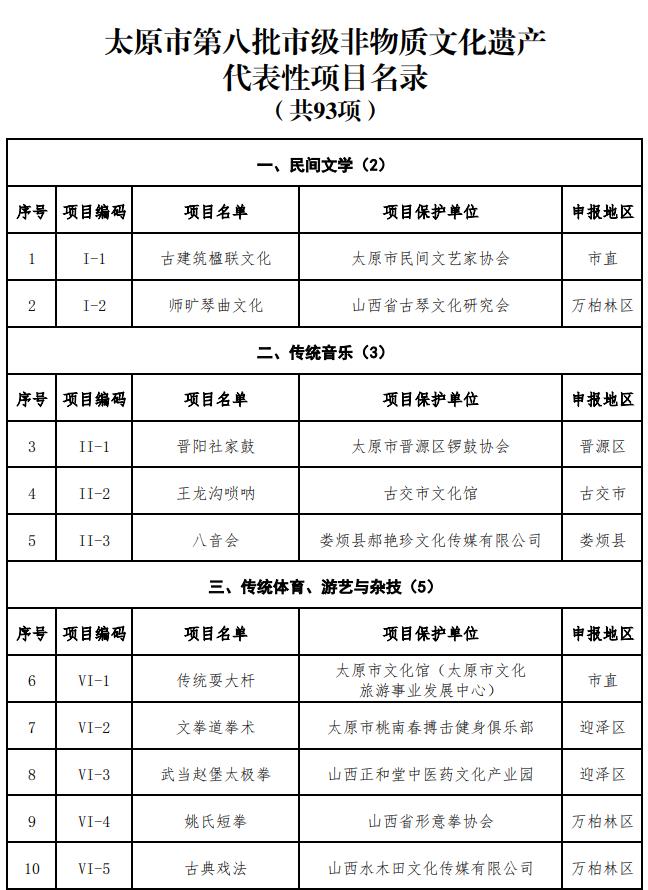 太原市第八批市級(jí)非物質(zhì)文化遺產(chǎn)代表性項(xiàng)目名錄