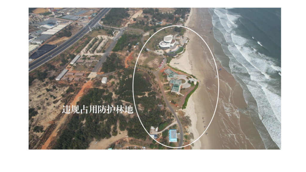 督察組在福建漳州發(fā)現(xiàn),部分沿海防護(hù)林破壞較嚴(yán)重。漳浦縣七星海旅游度假區(qū)項(xiàng)目擅自在沿海防護(hù)林范圍內(nèi)修擴(kuò)建經(jīng)營設(shè)施,違規(guī)占用防護(hù)林地75.4畝,其中63.6畝屬于基干林帶。龍海區(qū)(原龍海市)白塘灣房地產(chǎn)項(xiàng)目,因部分地塊不符合用林規(guī)定,將相關(guān)地塊分為四宗,分別以海上垂釣中心、海洋公園等名義變相獲批384.6畝用林手續(xù),其中沿海防護(hù)林地365畝。部分地塊內(nèi)已建設(shè)酒店、商業(yè)樓及房地產(chǎn)項(xiàng)目等。