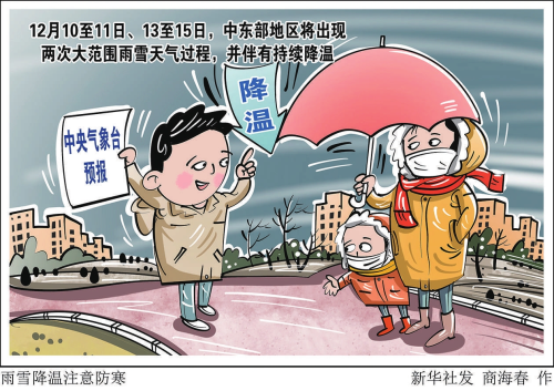 根據預報,12月9日夜間到10日有大雪,局地暴雪;12月12日夜間到15日白天有中雪、局地大雪,氣溫持續偏低。累計降水量14毫米至25毫米,最大積雪深度10厘米至25厘米。