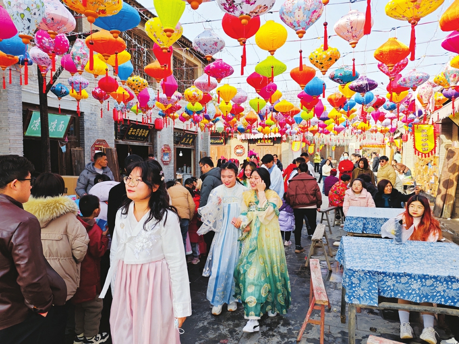 大年初一,游人穿梭于周倉文化園景區,沉浸式體驗春節期間的別樣快樂。(周明飛攝)