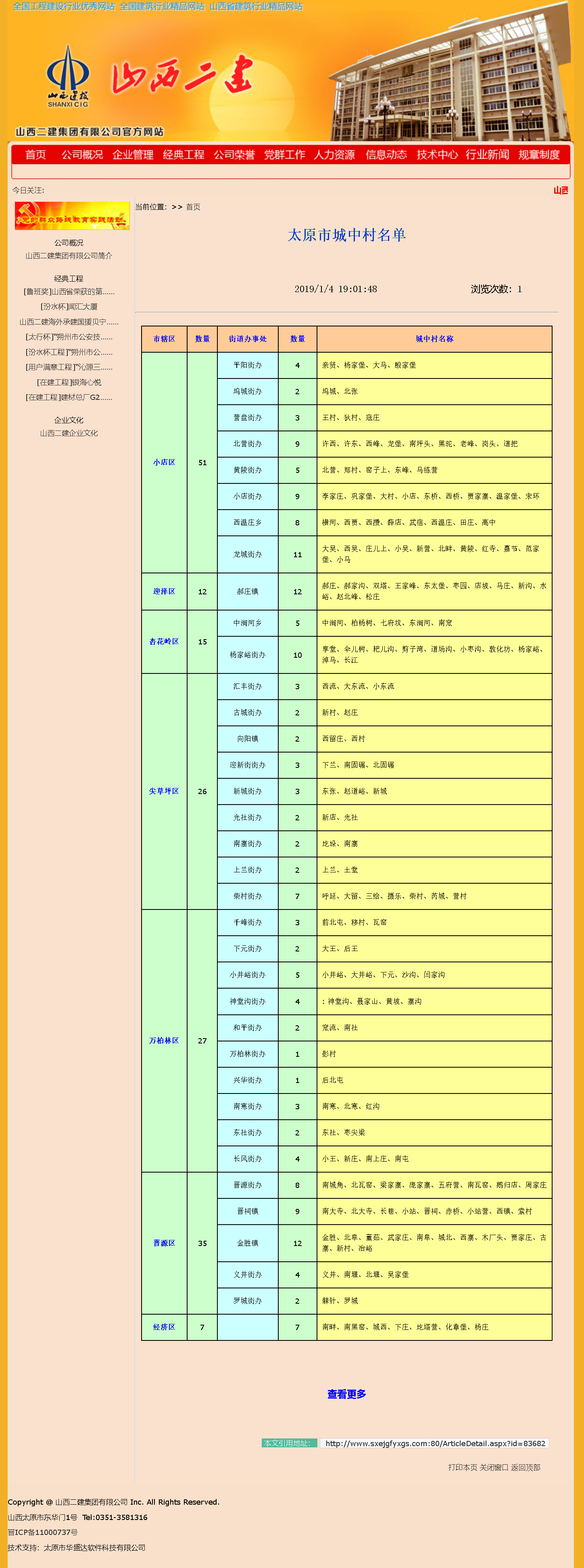 小店區(qū):(38個(gè))親賢、楊家堡、大馬、塢城、北張、王村、狄村、寇莊、許西、許東、西峰、龍堡、南坪頭、黑駝、老峰、崗頭、道把、大吳、西吳、北營(yíng)、鄭村、莊兒上、小吳、北畔、窯子上、黃陵、東峰、紅寺、嘉節(jié)、范家堡、李家莊、鞏家堡、大村、小店、橫河、西賈、西攢、薛店