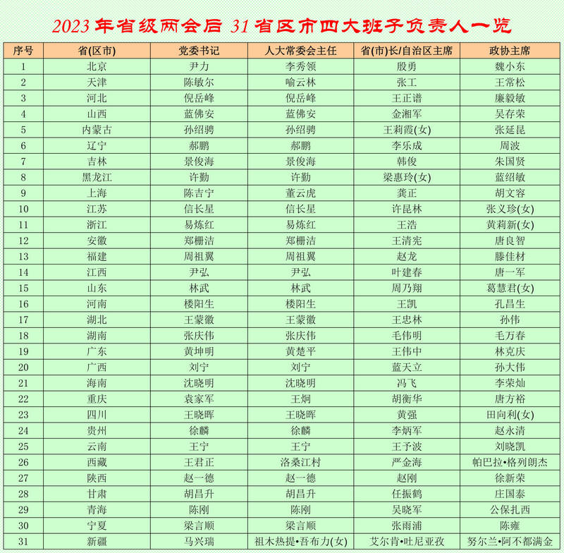 中新網(wǎng)北京1月20日電(記者 闞楓)19日,2023年省級(jí)地方兩會(huì)全部落幕,全國(guó)31個(gè)省市區(qū)完成省級(jí)人大、政府、政協(xié)三套班子的換屆。