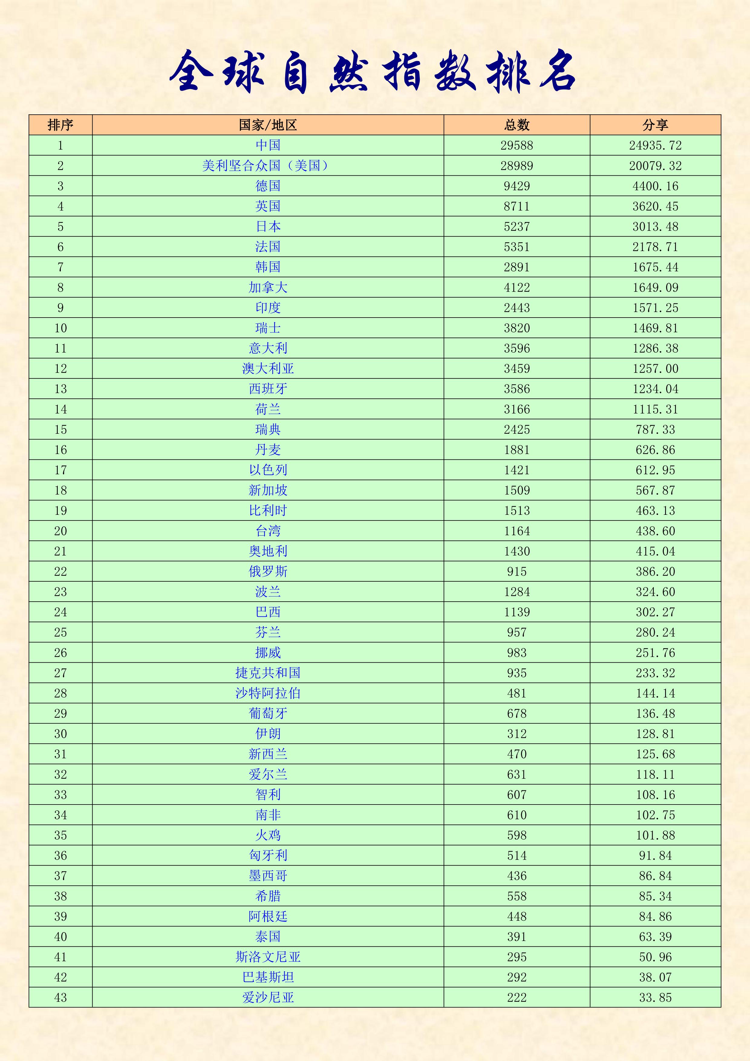 排名 國家/地區 總數 分享