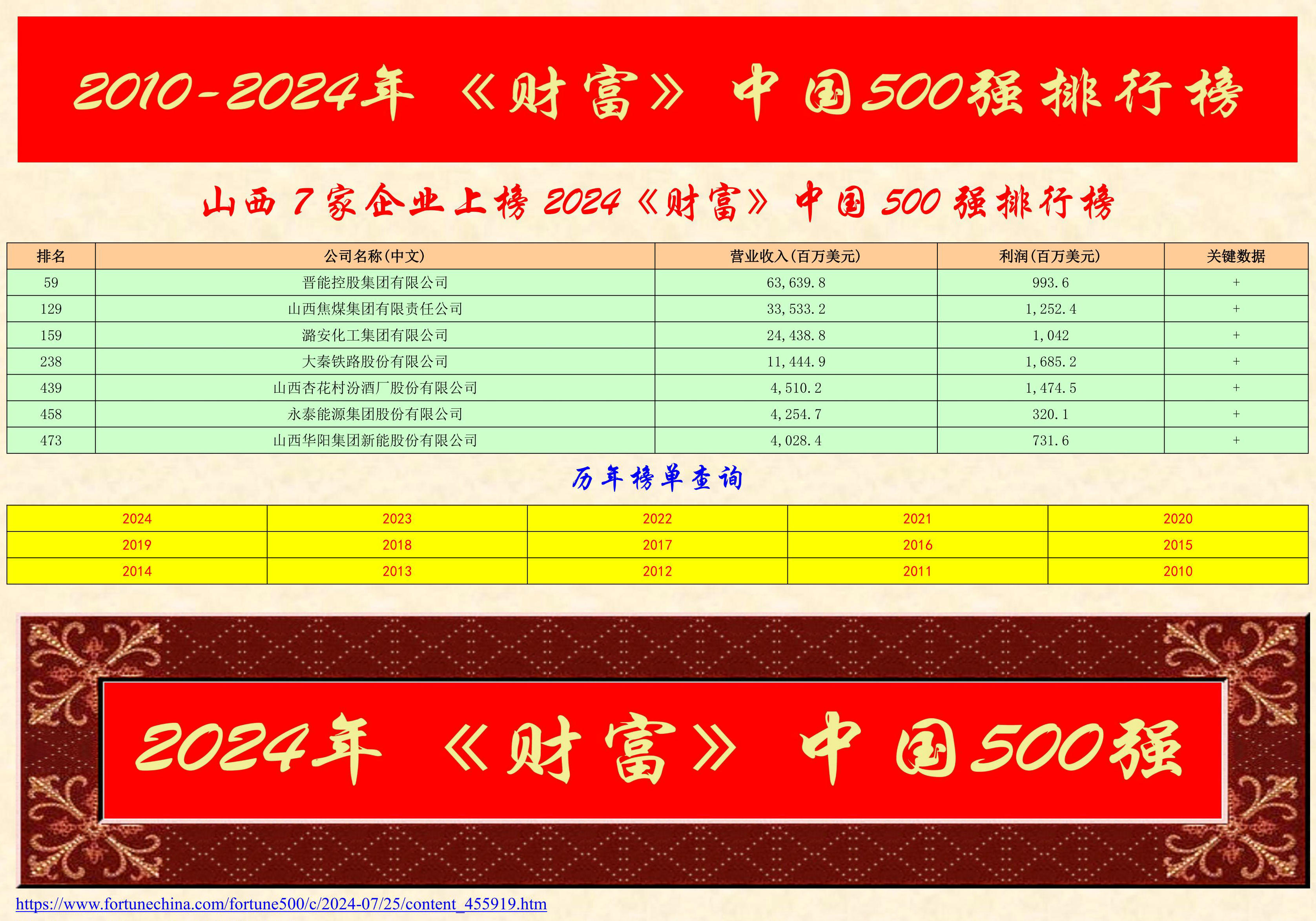 財富中文網于北京時間7月25日發布了2024年《財富》中國500強排行榜。該榜單采用與《財富》世界500強一脈相承的制榜方法,同時包括了上市和非上市企業。依據這個榜單及其數據,人們可以了解中國最大企業的最新發展趨勢。FORTUNE.com也已全球同步發布了該榜單的英文版。