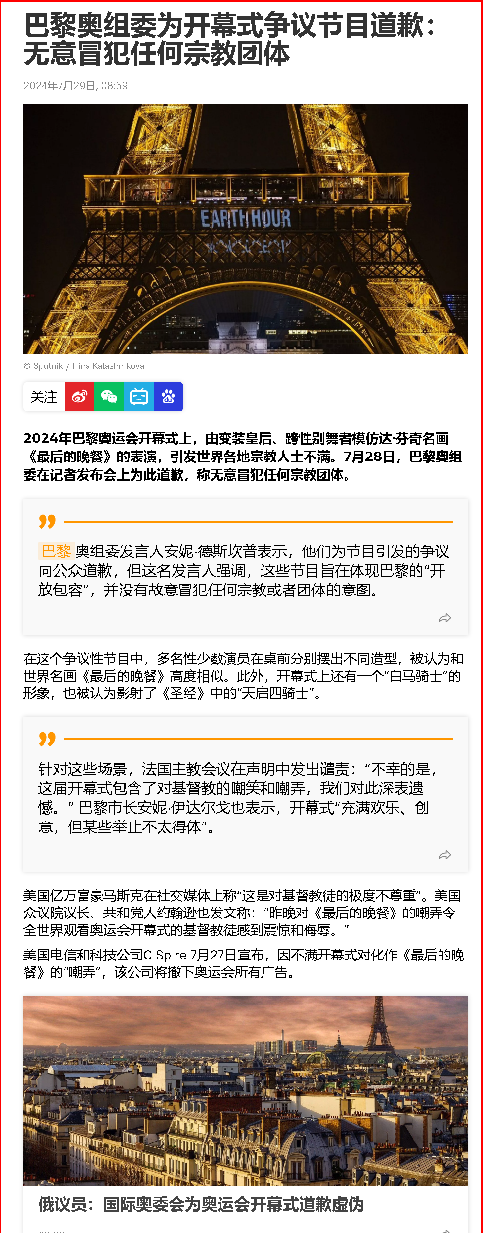 感悟第三十三屆奧運會開幕式——巴黎奧組委為開幕式爭議節目道歉