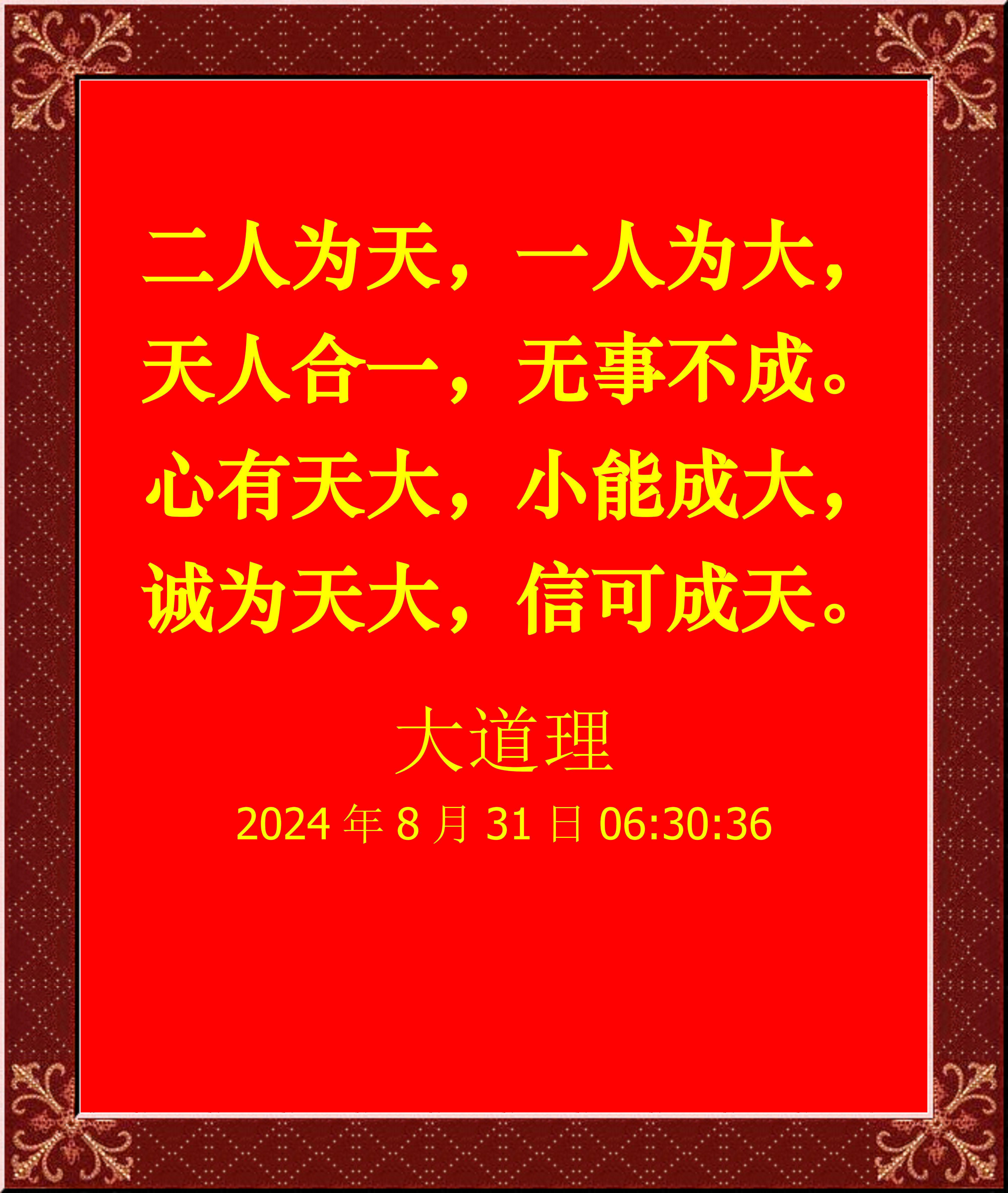 心有天大,小能成大,誠(chéng)為天大,信可成天。