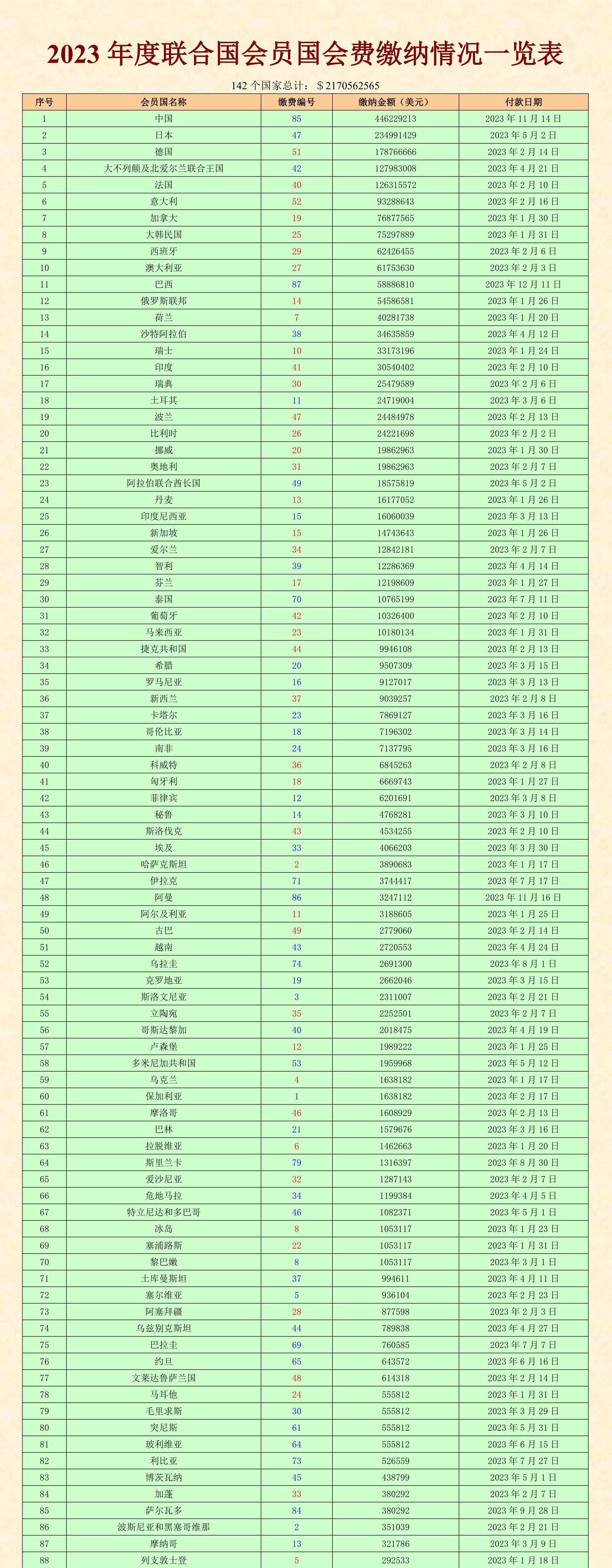 查閱去年聯合國會員國會費繳納情況