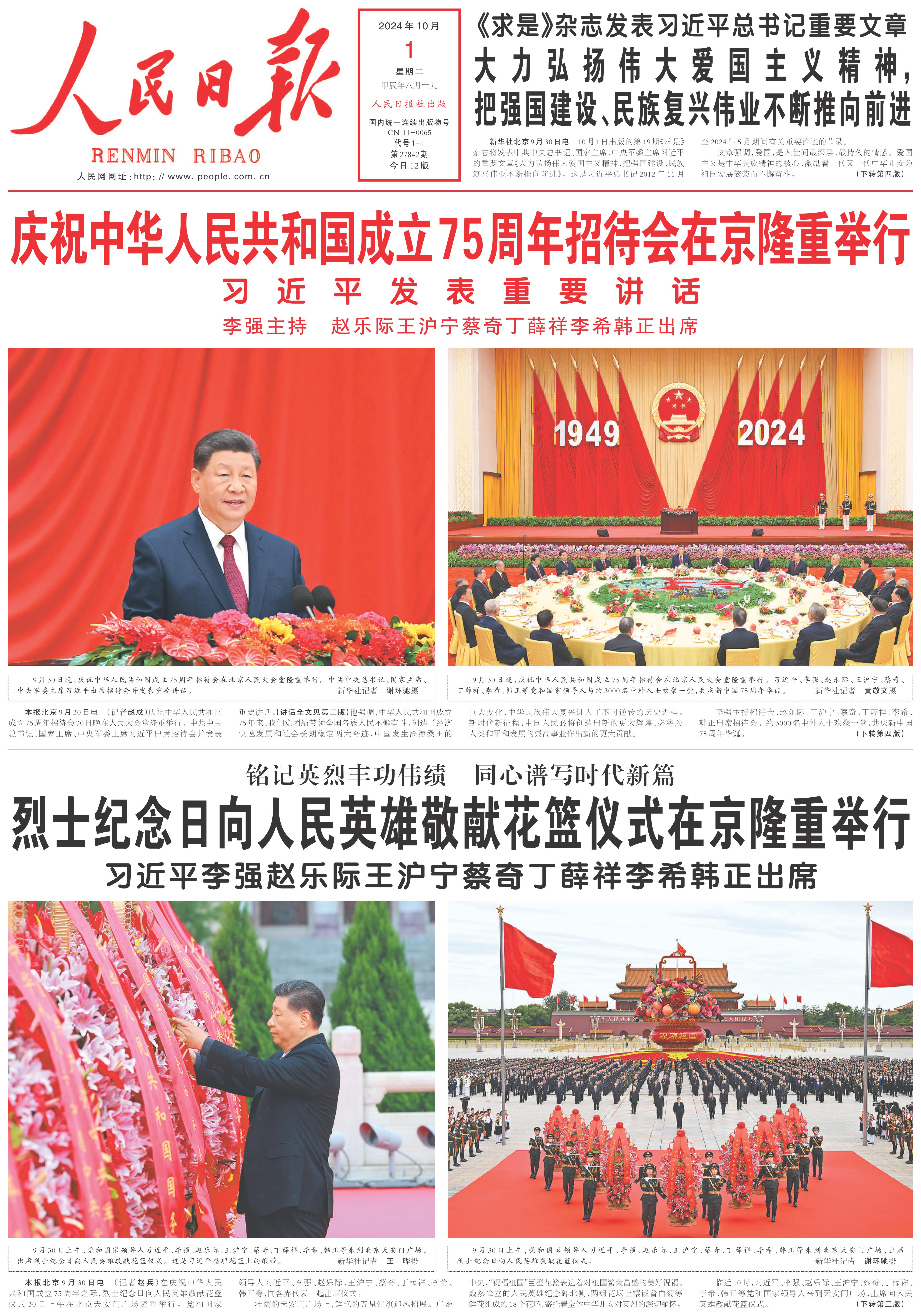 75 2024 壯闊的行進 光明的前程(社論) ——熱烈慶祝中華人民共和國成立七十五周年 烈士紀念日向人民英雄敬獻花籃儀式在京隆重舉行 2261