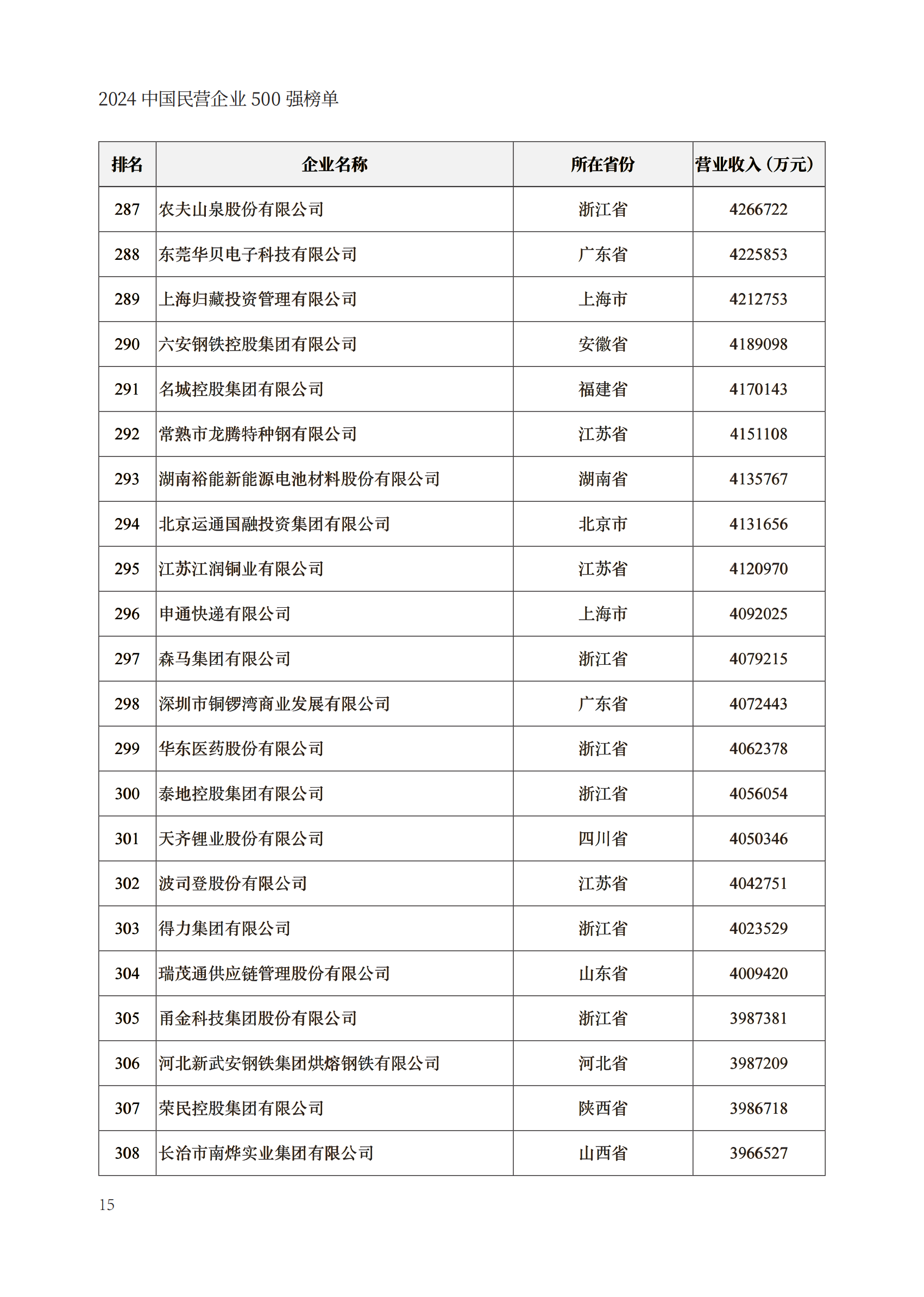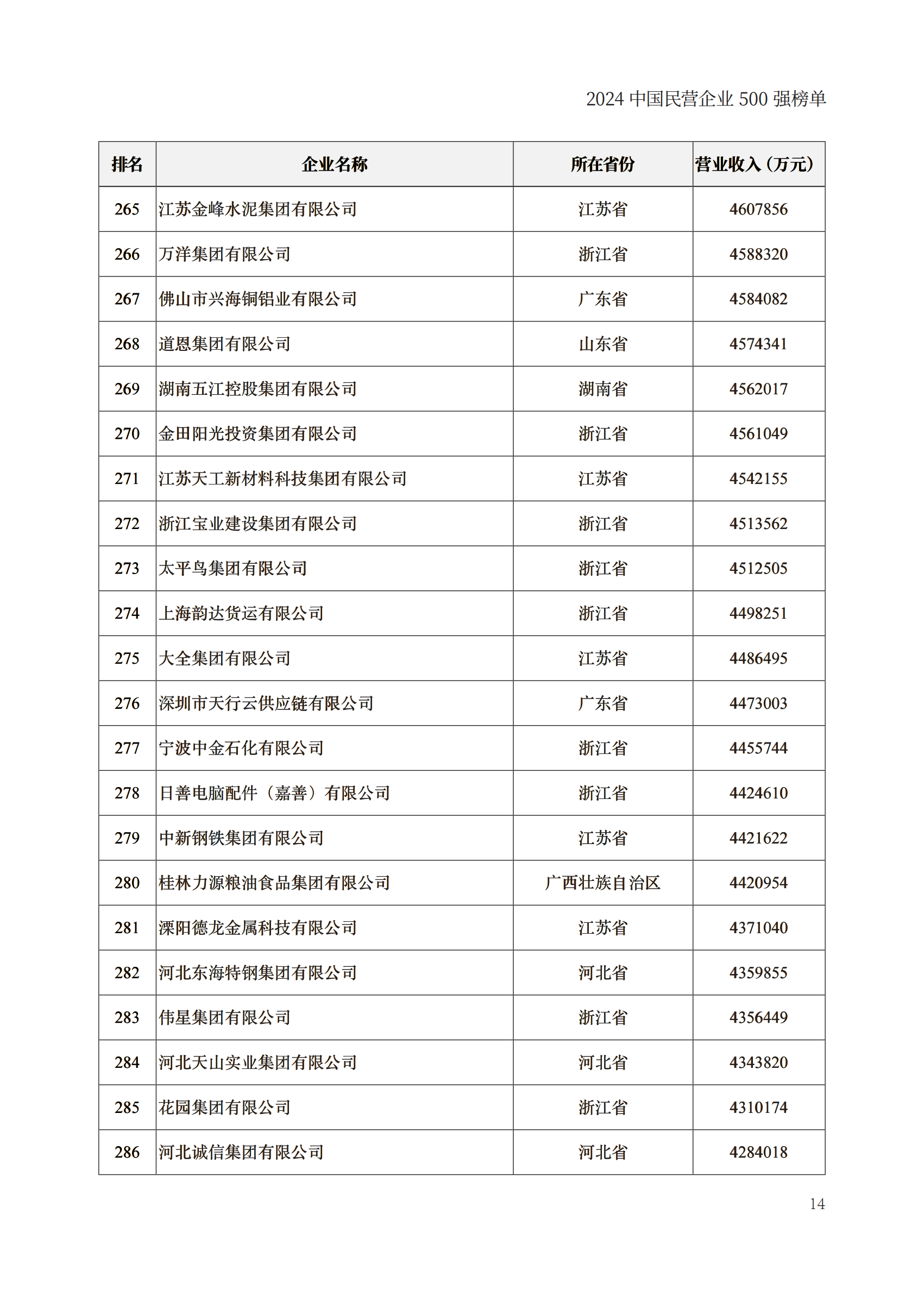 【行業動態】2024中國民營企業500強榜單在蘭發布