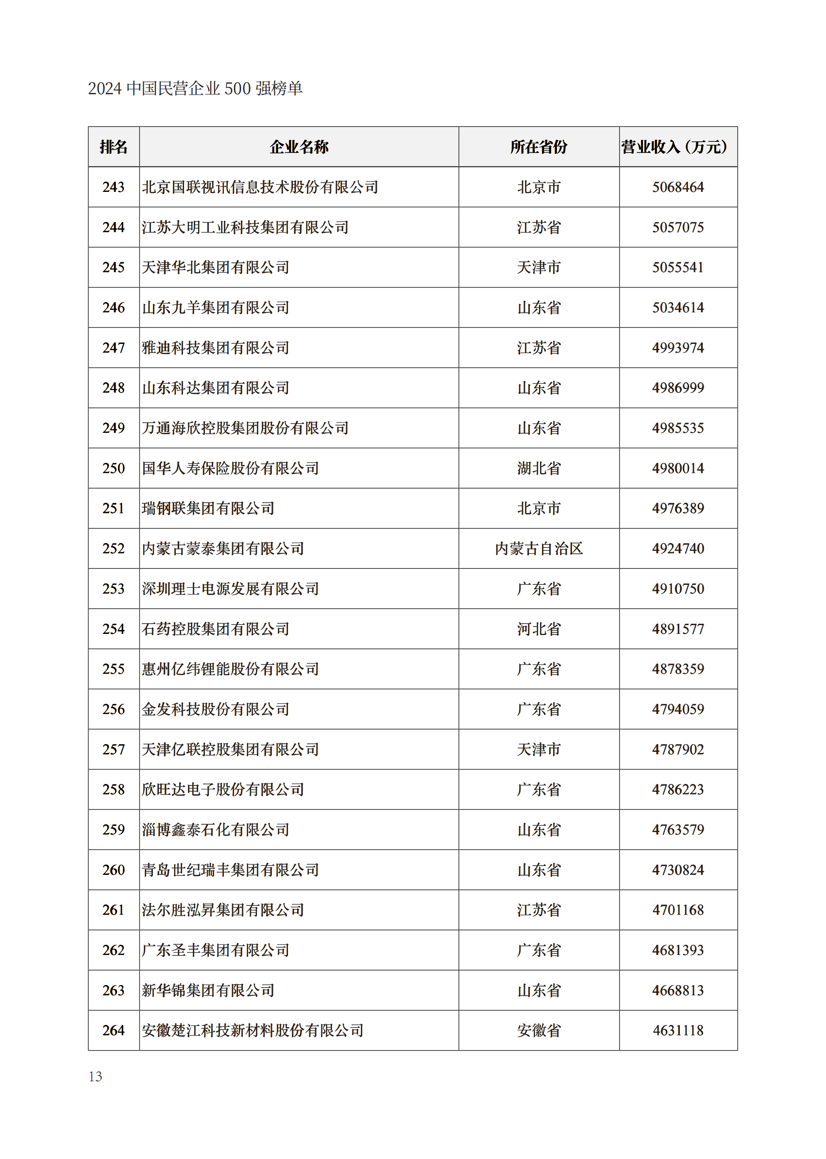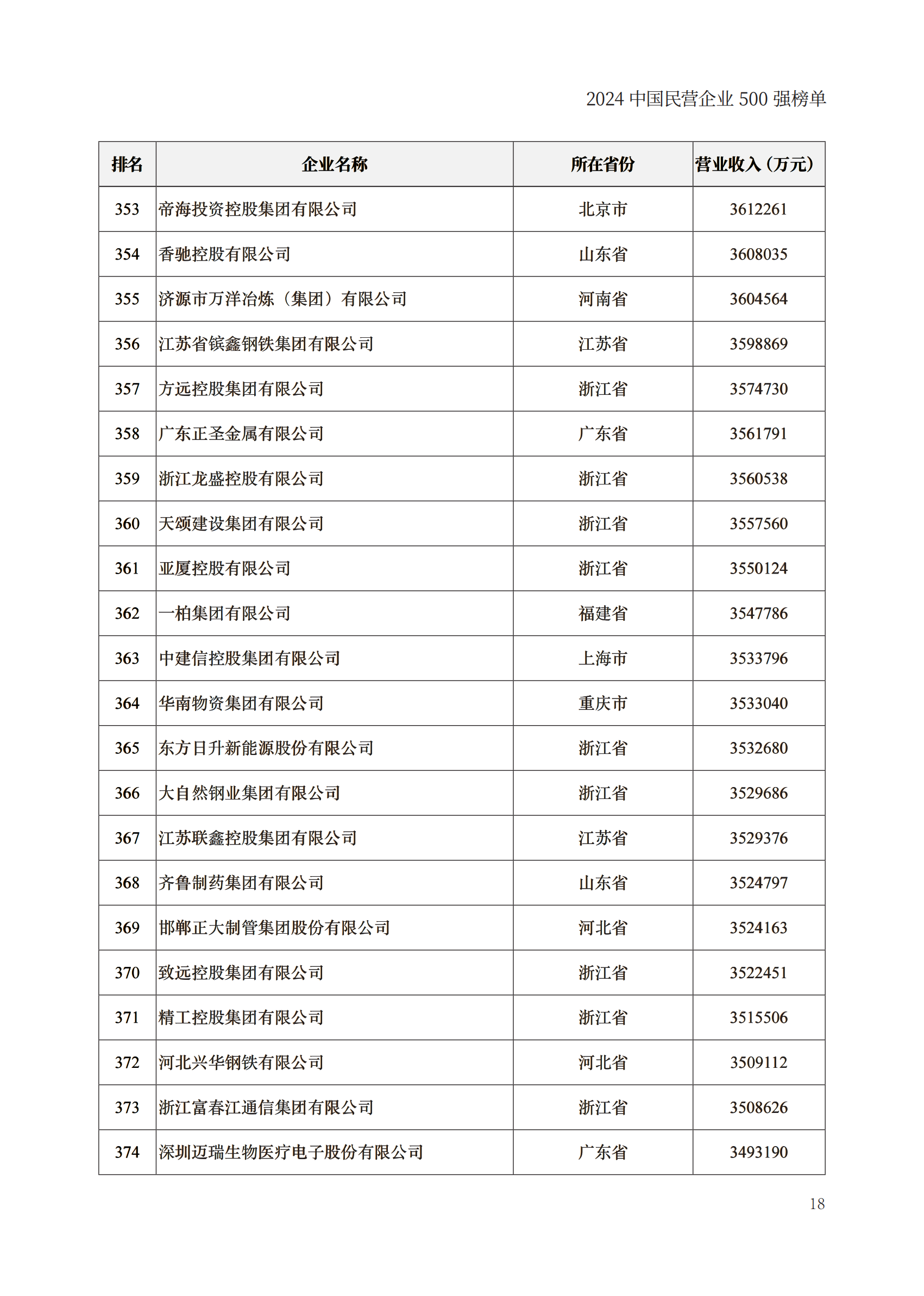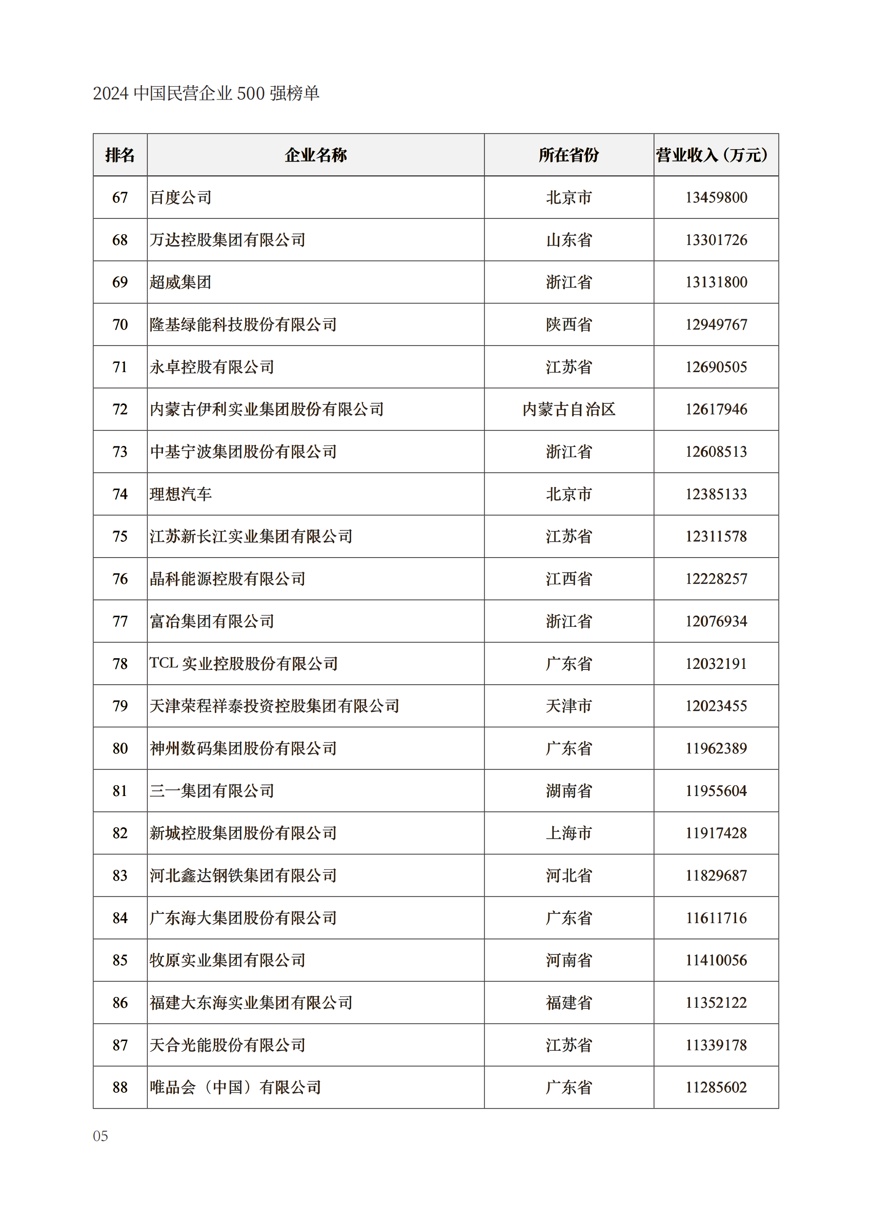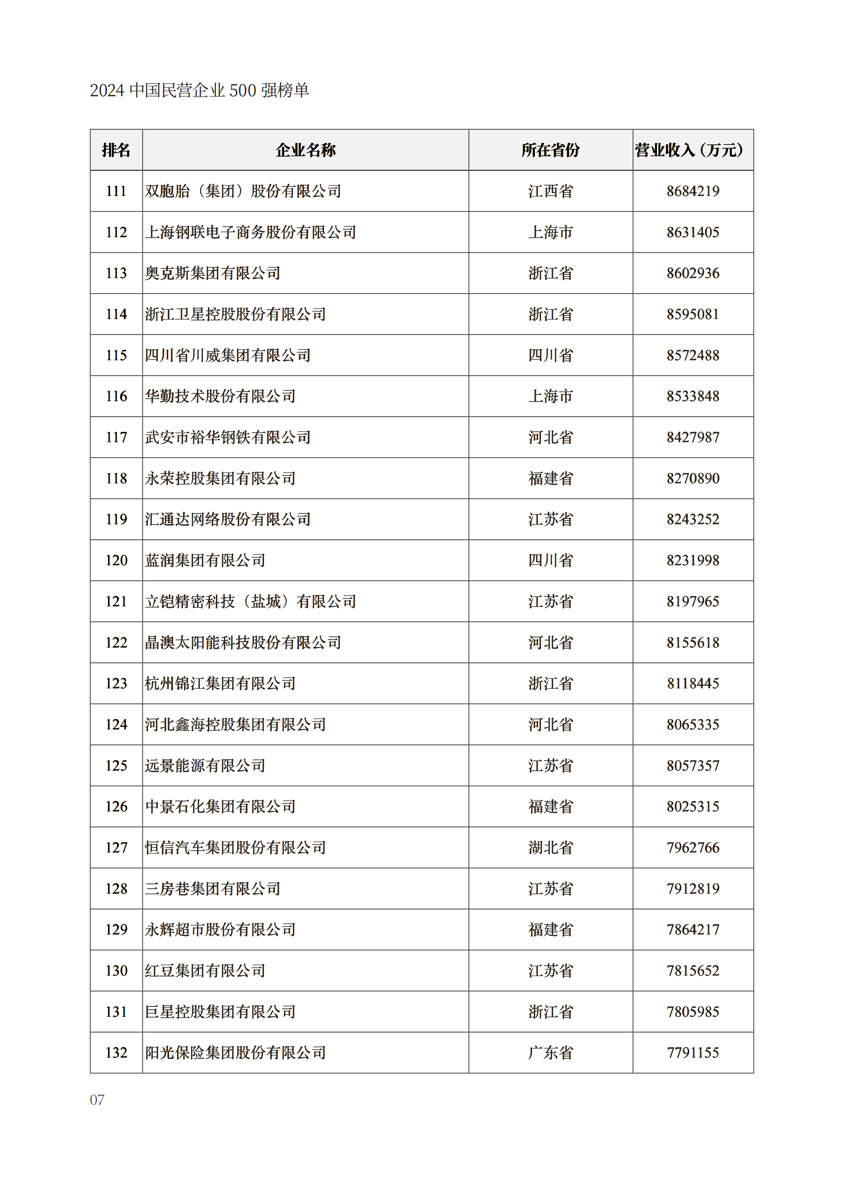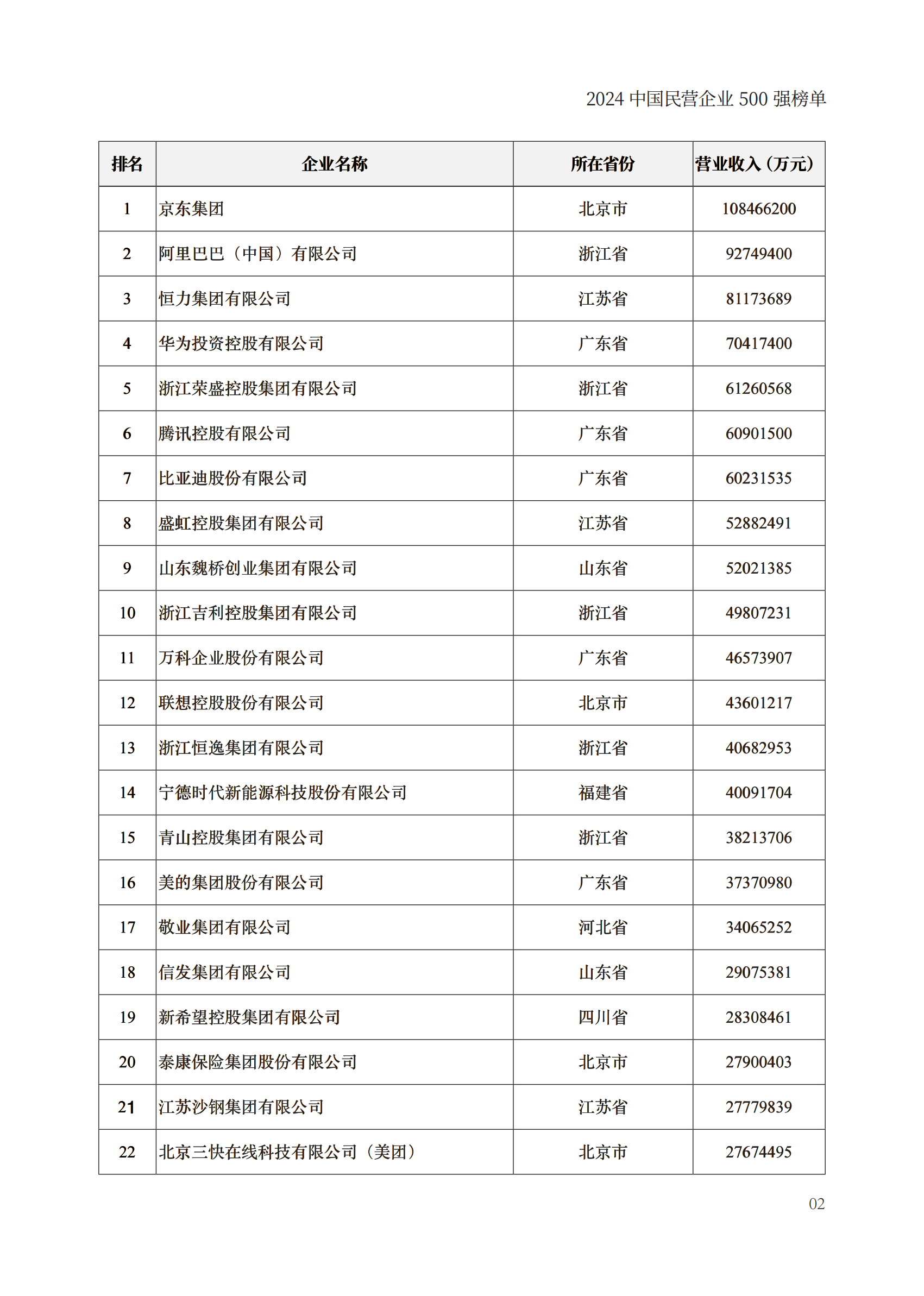 【行業動態】2024中國民營企業500強 制造業民營企業500強 服務業民營企業100強