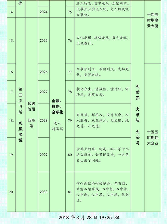 山西二建發展戰略五年路線圖和時間表,從2011年到2020年,分兩個五年兩個階段規劃了十年的成就,是考慮現實和實際的可能性與變化的環境形成的階段性感悟程度。換言之,就看決策者的維度能否自覺接受并且堅定不移去執行!任何事物,懷疑或者遲滯,必將功虧一簣事倍功半!重回大道,二十年以后的事情了!