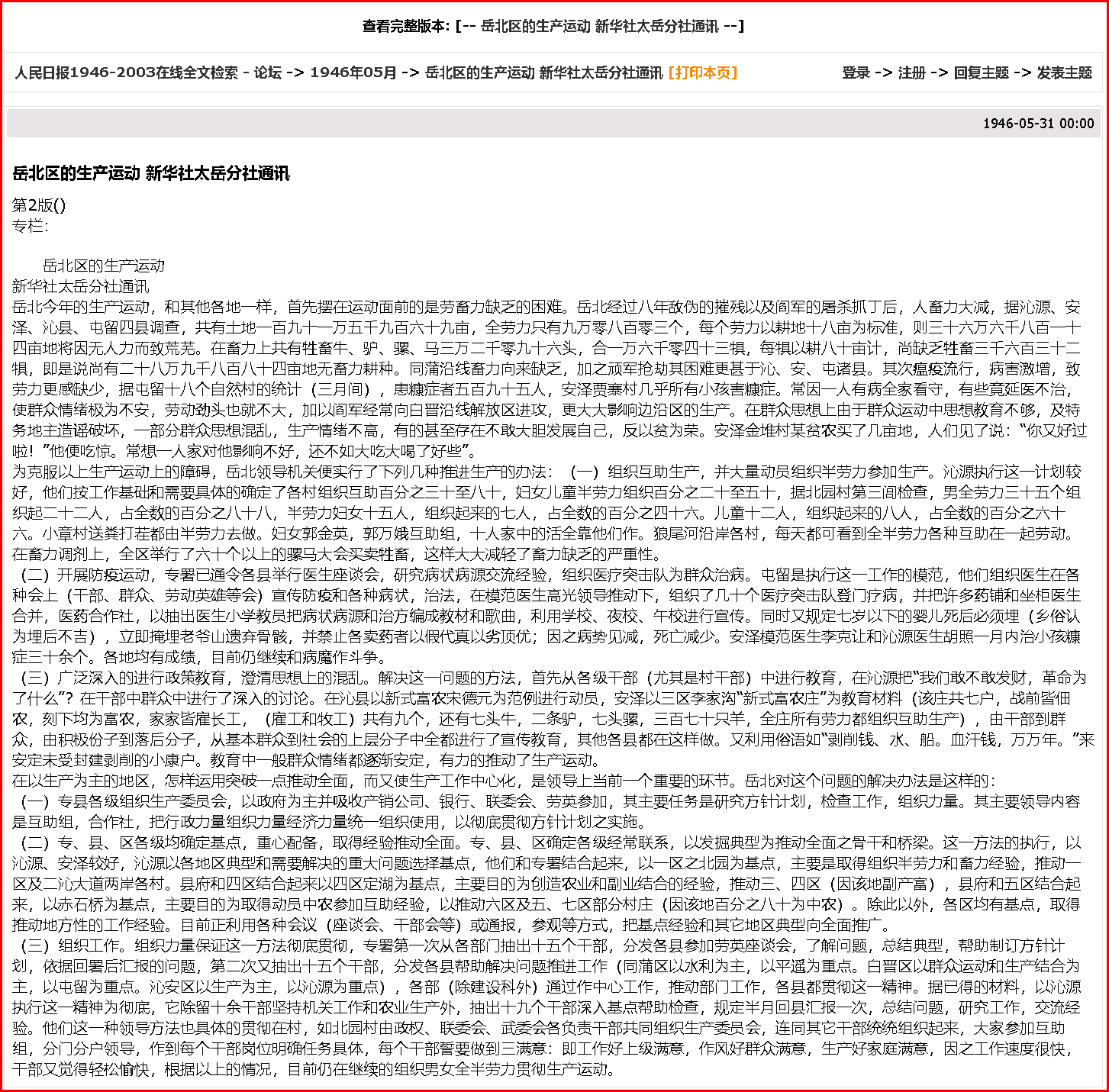 1. 岳北區(qū)的生產(chǎn)運(yùn)動(dòng) 新華社太岳分社通訊
