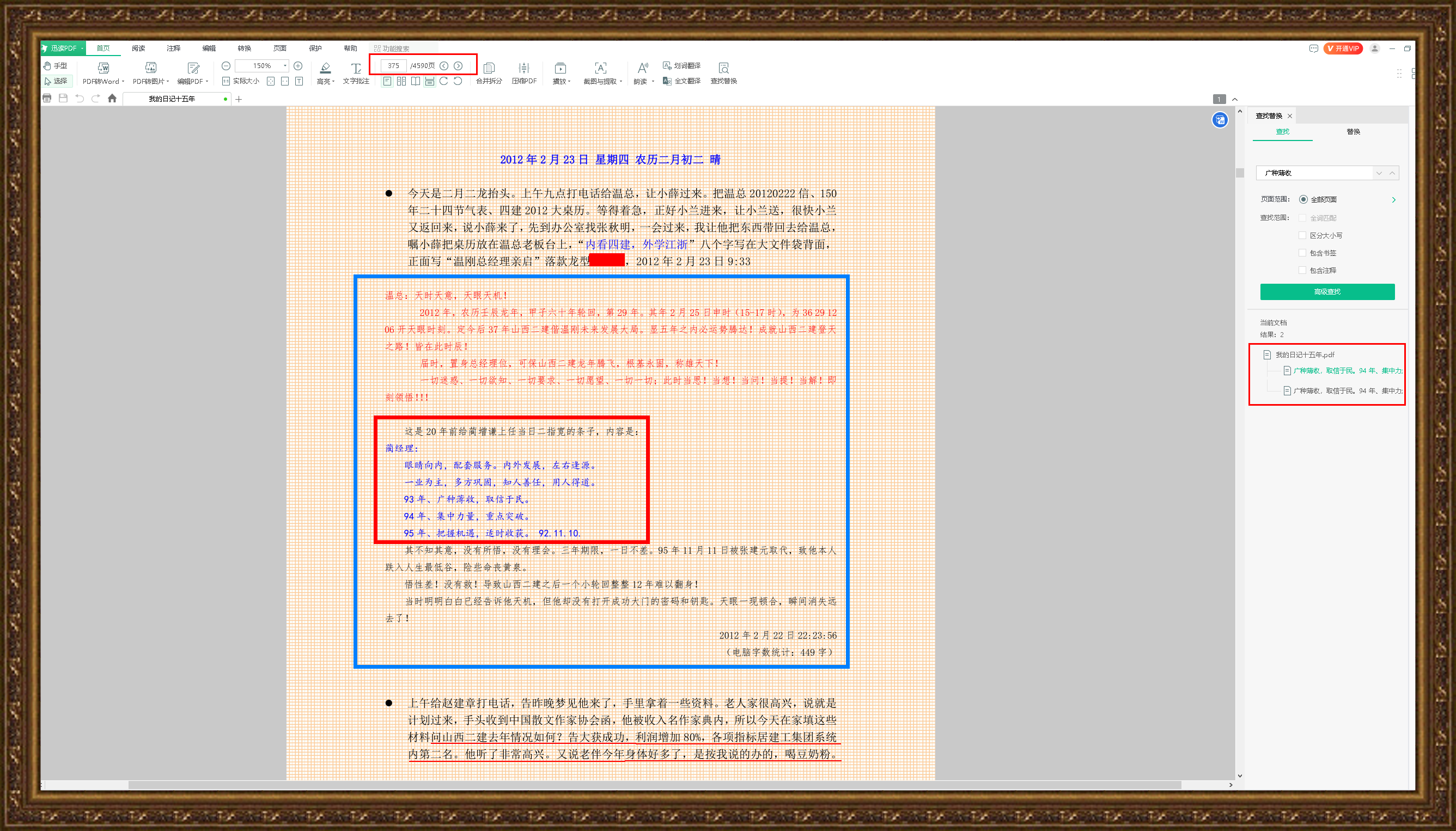 剛才查閱日記,查找《感悟三十年前的一件往事——感應達到靈性的升華》這篇文章,這是寫給二建掌門人的一封信中的內容。那年正好六十歲,也是龍年,被正式聘為總經理顧問,這在二公司是一件暴炸性的新聞,尤其是2011年1月5日第一次與掌門人會悟后的第二天,我的名字在單位全體干部大會上讓所有參會人感到驚訝!就連內弟女兒分公司經理都對她說,你大姑父太厲害了,溫總在大會上講,此人真是他從未見過的高人,我所有的困惑和難題,人家全都給了解疑答惑,一篇文章就能改變我的決定改變山西二建的命運!贊揚恭敬之意不絕于耳,更讓以前認識他的人頗感神奇!趁著熱議,孩子告訴她的經理:我大姑父說,你是未來的總經理!這句話一語成讖:現在的董事長就是胡孟師,當時的八分公司經理!