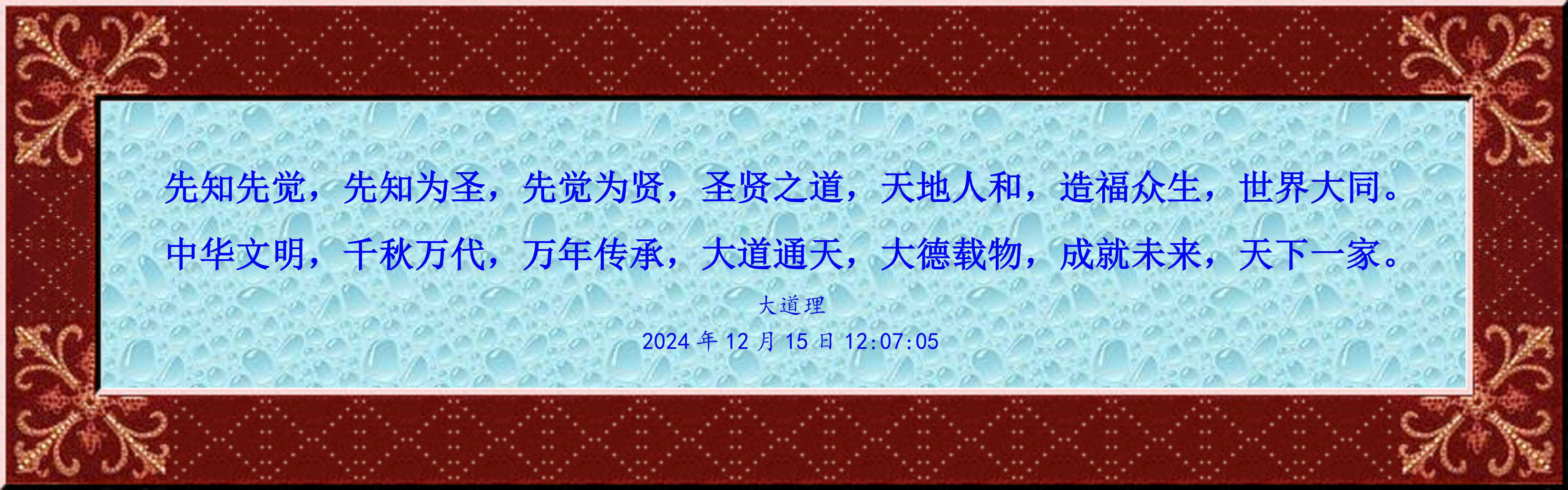 中華文明,千秋萬代,萬年傳承,大道通天,大德載物,成就未來,天下一家。