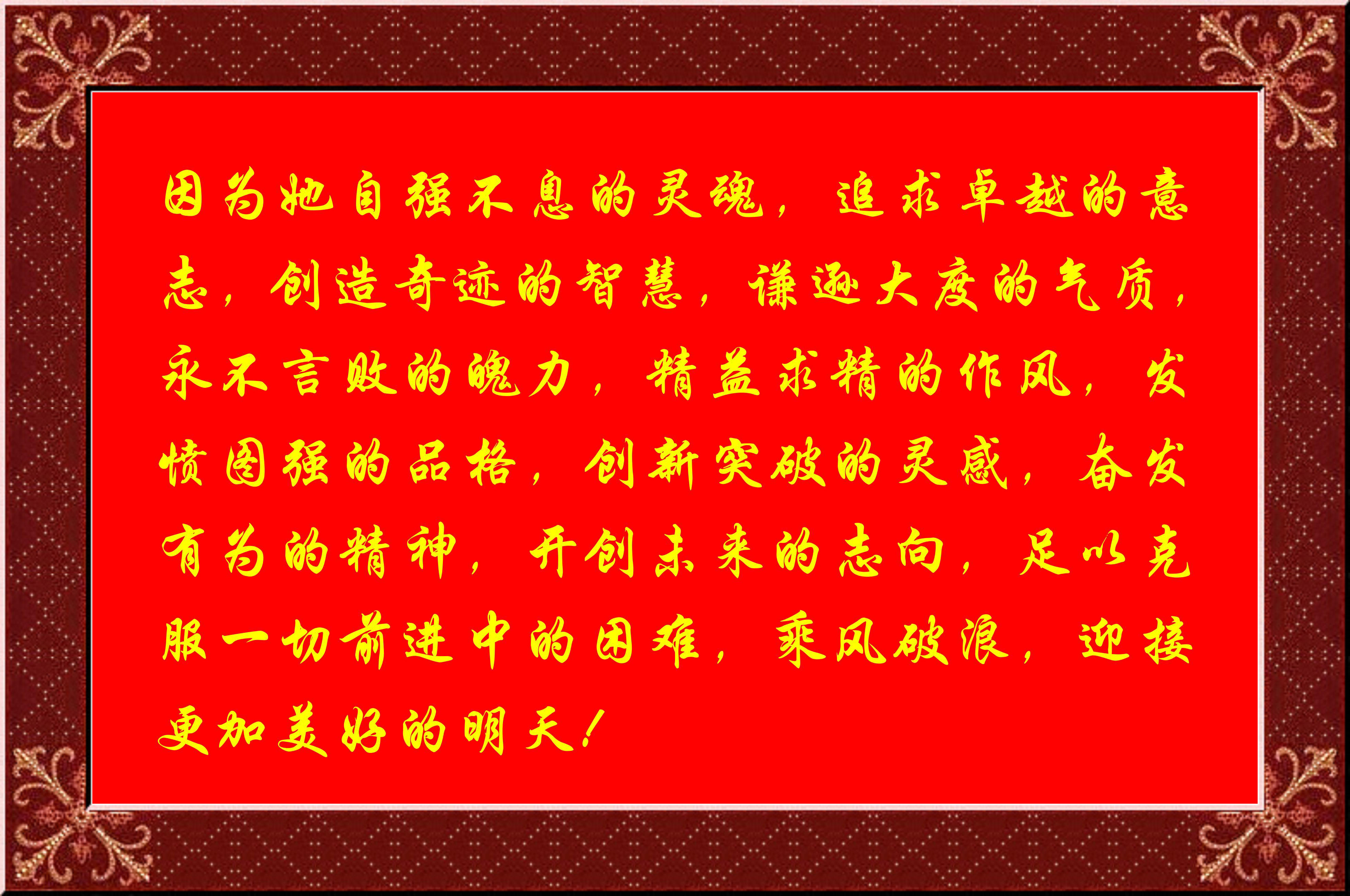 因?yàn)樗詮?qiáng)不息的靈魂,追求卓越的意志,創(chuàng)造奇跡的智慧,謙遜大度的氣質(zhì),永不言敗的魄力,精益求精的作風(fēng),發(fā)憤圖強(qiáng)的品格,創(chuàng)新突破的靈感,奮發(fā)有為的精神,開創(chuàng)未來的志向,足以克服一切前進(jìn)中的困難,乘風(fēng)破浪,迎接更加美好的明天!