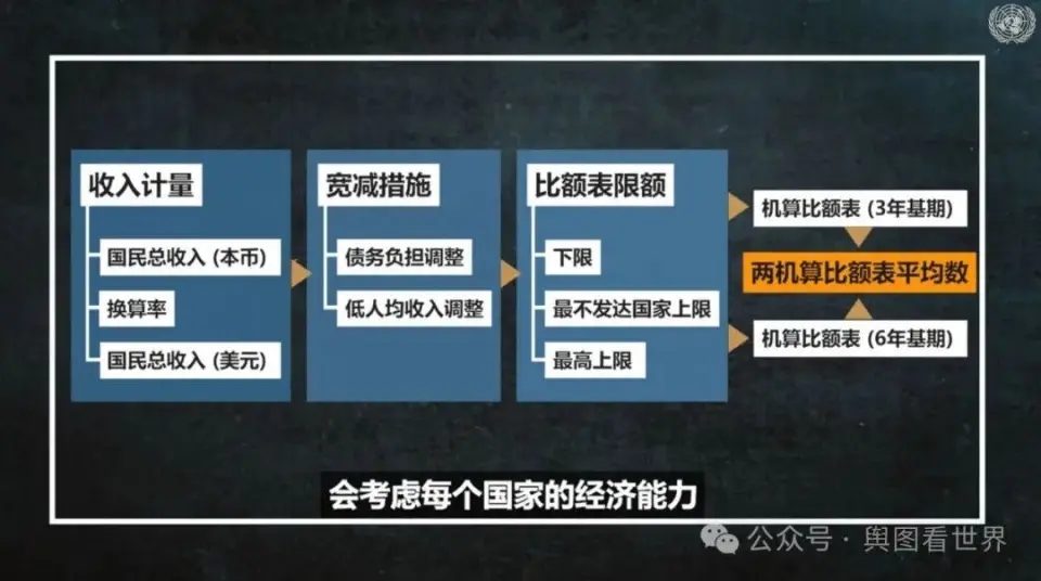 聯(lián)合國會費分?jǐn)偙壤咳晷抻喴淮危饕凑战?jīng)濟規(guī)模和人均GNI來分?jǐn)偅罡?2%,最低0.001%。若某個國家的人均GNI或人均GDP與全球人均水平相當(dāng)?shù)脑挘涑袚?dān)的聯(lián)合國會費比例就與其經(jīng)濟規(guī)模在全球的比例大體一致。發(fā)達經(jīng)濟體,其人均GNI或人均GDP是全球人均水平的數(shù)倍,他們承擔(dān)的會費比例也應(yīng)是自身經(jīng)濟規(guī)模在全球占比的數(shù)倍。低收入國家,因為人均GNI偏低,分配到的會費比例由此被拉低。中國人均GNI和人均GDP基本達到了全球平均水平,所以我國承擔(dān)的聯(lián)合國會費接近“中國經(jīng)濟規(guī)模在全球的比例”。而印度,人均GNI只是全球人均水平的五分之一,承擔(dān)的會費比例也要成倍縮減。
