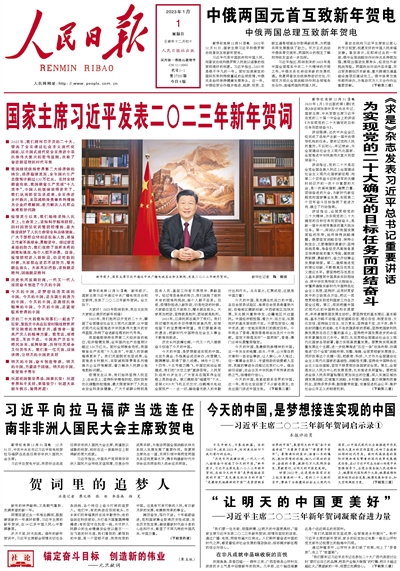 2021年元旦《人民日報》發表《國家主席習近平發表二〇二一年新年賀詞》。