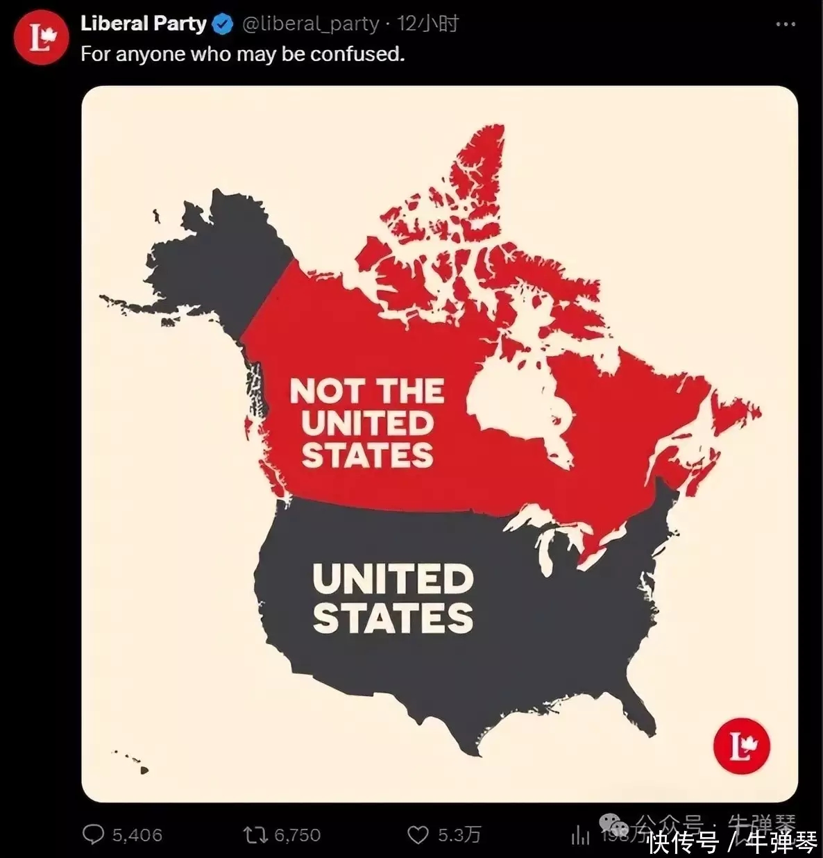 氣得加拿大執政黨自由黨也貼出一張圖。