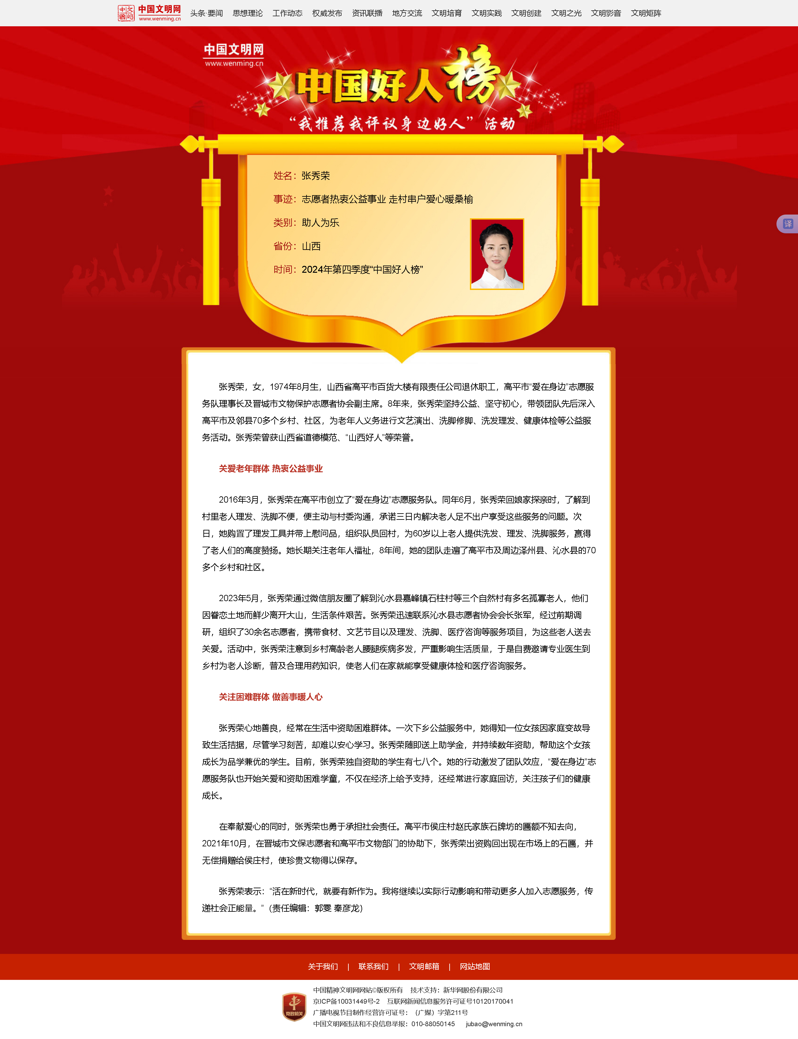 感悟2024年三季度中國好人榜——山西范潞霞和張秀榮光榮上榜