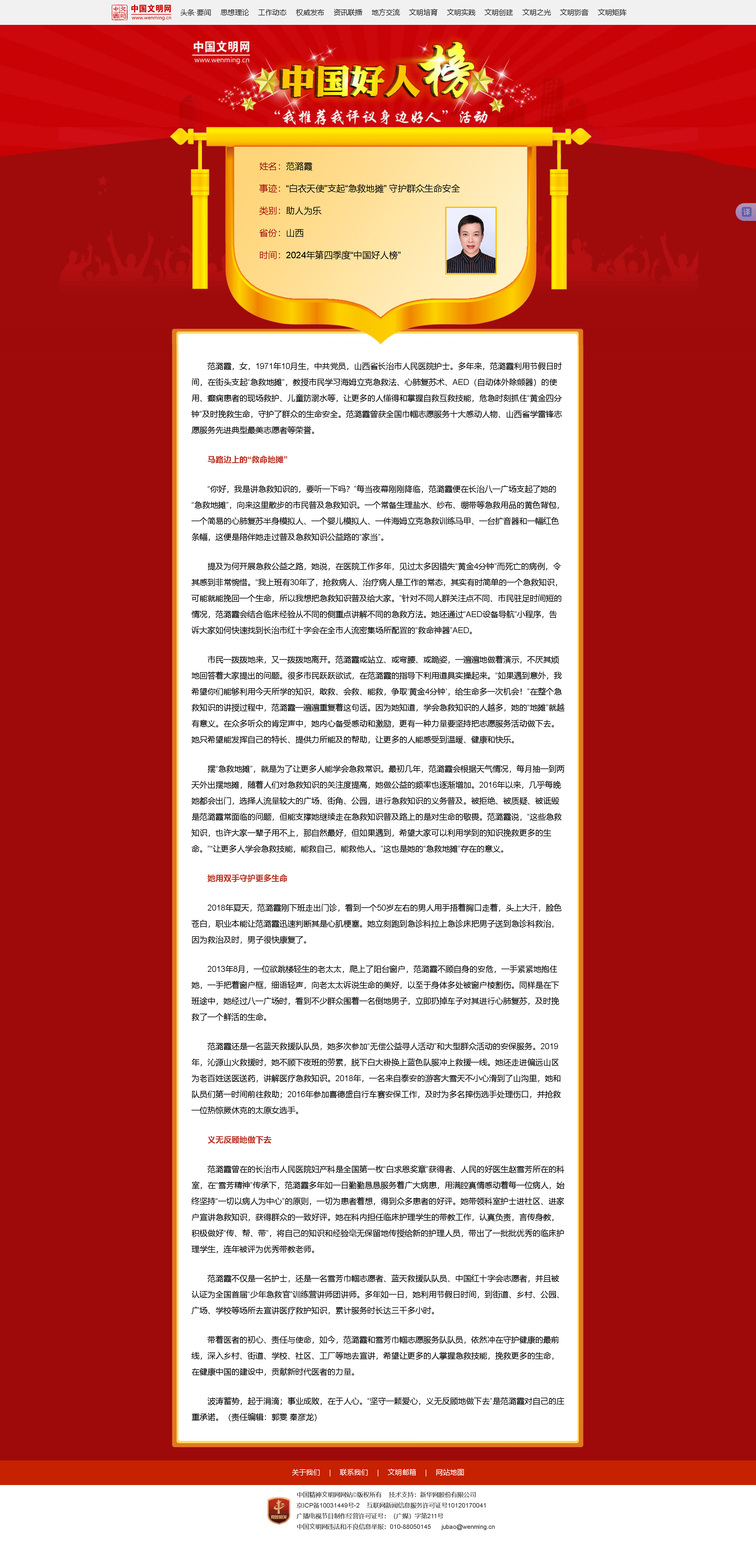 【綜合信息】2024年第三季度“中國好人”榜名單(152人/組)