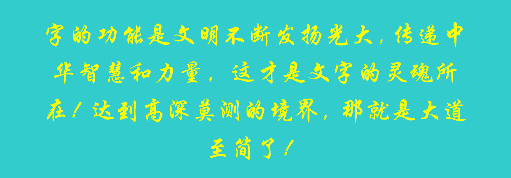總而言之,字的功能是文明不斷發揚光大,傳遞中華智慧和力量,這才是文字的靈魂所在,達到高深莫測的境界,那就是大道至簡了!什么是大道?把握規律!什么是至簡?一錘定音!