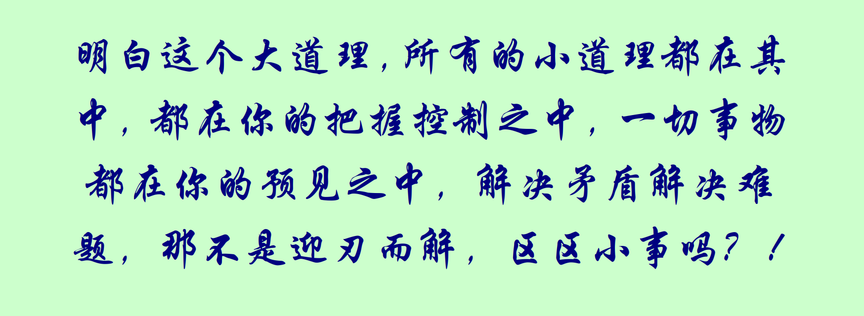 明白這個大道理,所有的小道理都在其中,都在你的把握控制之中,一切事物都在你的預見之中,解決矛盾解決難題,那不是迎刃而解,區區小事嗎?!
