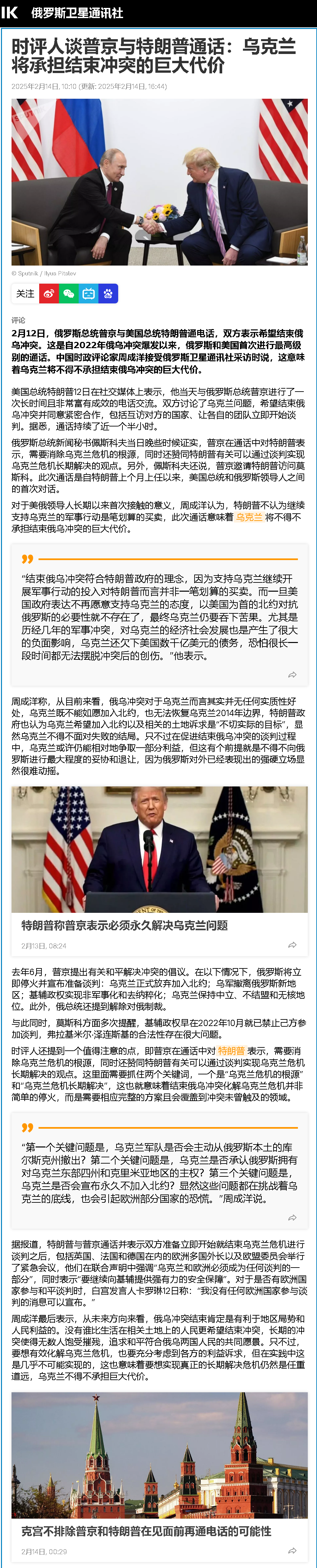 近日,美國總統(tǒng)特朗普先后與俄總統(tǒng)普京、烏總統(tǒng)澤連斯基通電話。他隨后表示,美俄雙方同意就結(jié)束俄烏沖突進(jìn)行“緊密合作”,并派遣各自團(tuán)隊(duì)“立即開始談判”。美國眾議員邁克爾·麥考爾15日在出席慕安會期間透露,美國國務(wù)卿魯比奧等官員和俄方官員將在沙特阿拉伯會晤,討論俄烏沖突問題。