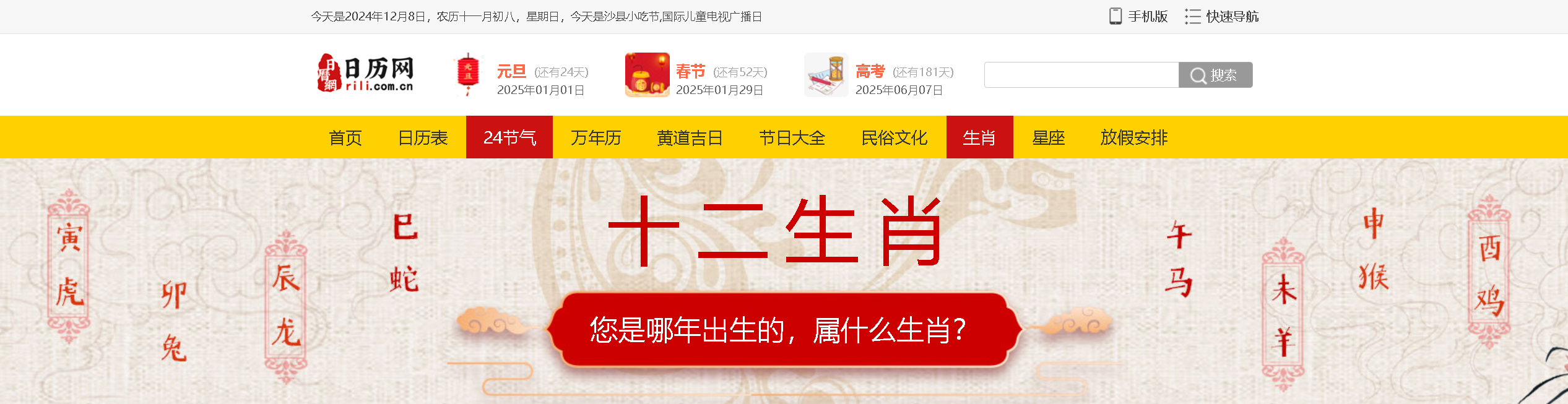 對于中國人獨特的人生符號,除了上天賦予每一個人的符號,也就是名字之外,還有一個形影不離看不見的記號,那就是與生俱來的屬相——生肖!